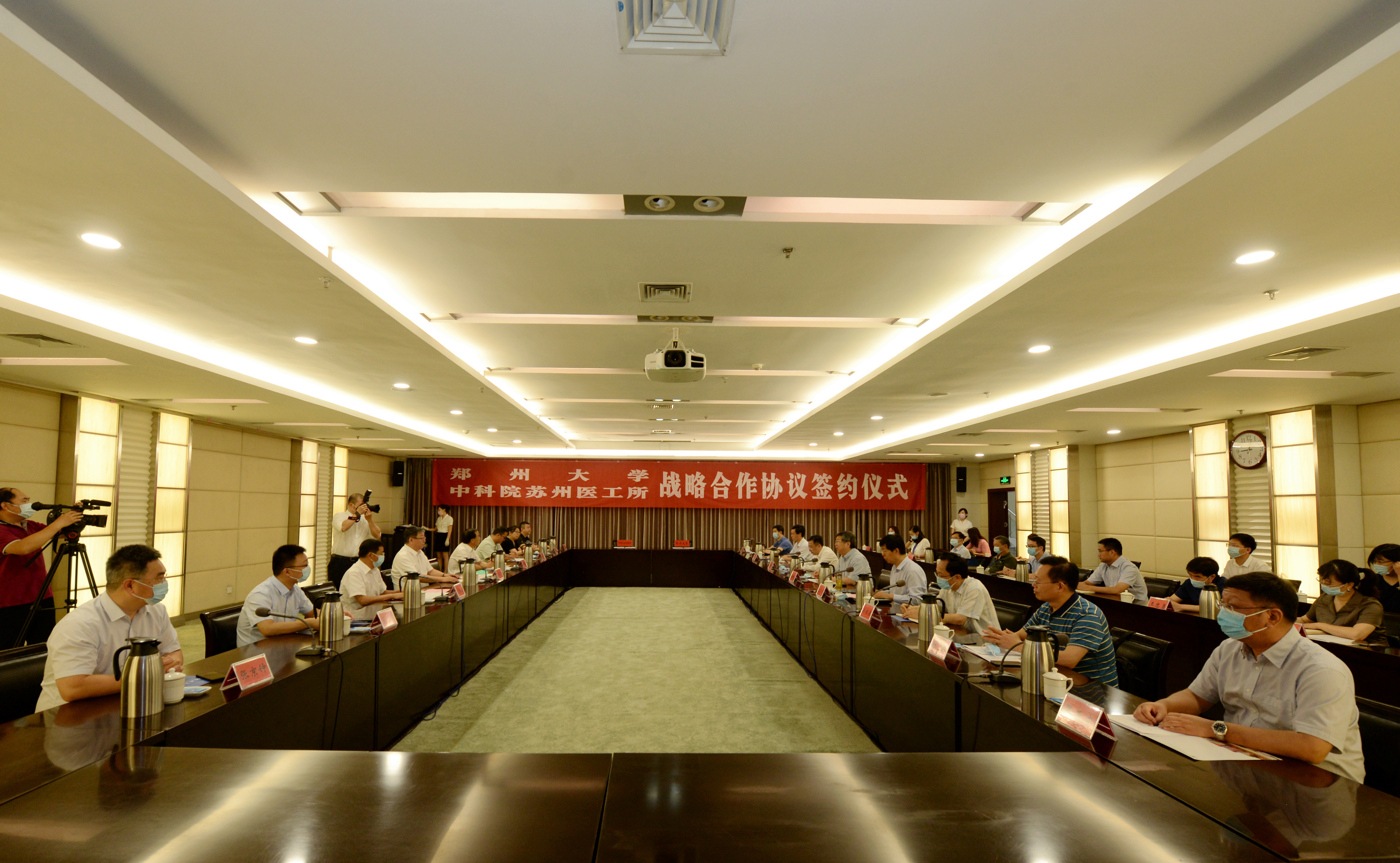 7月14日上午,beat365在线唯一官网与中国科学院生物医学工程技术研究所战略合作协议签约仪式在主校区举行。河南省政协副主席、beat365在线唯一官网校长刘炯天,苏州医工所所长唐玉国、党委书记杨洪波,郑州市副市长史占勇,校党委常委、副校长关绍康,副校长赵明皞以及苏州医工所、郑州市和beat365在线唯一官网有关单位负责同志参加仪式。郑州市高新区党工委书记王新亭主持仪式。
