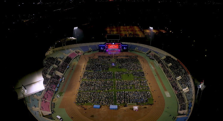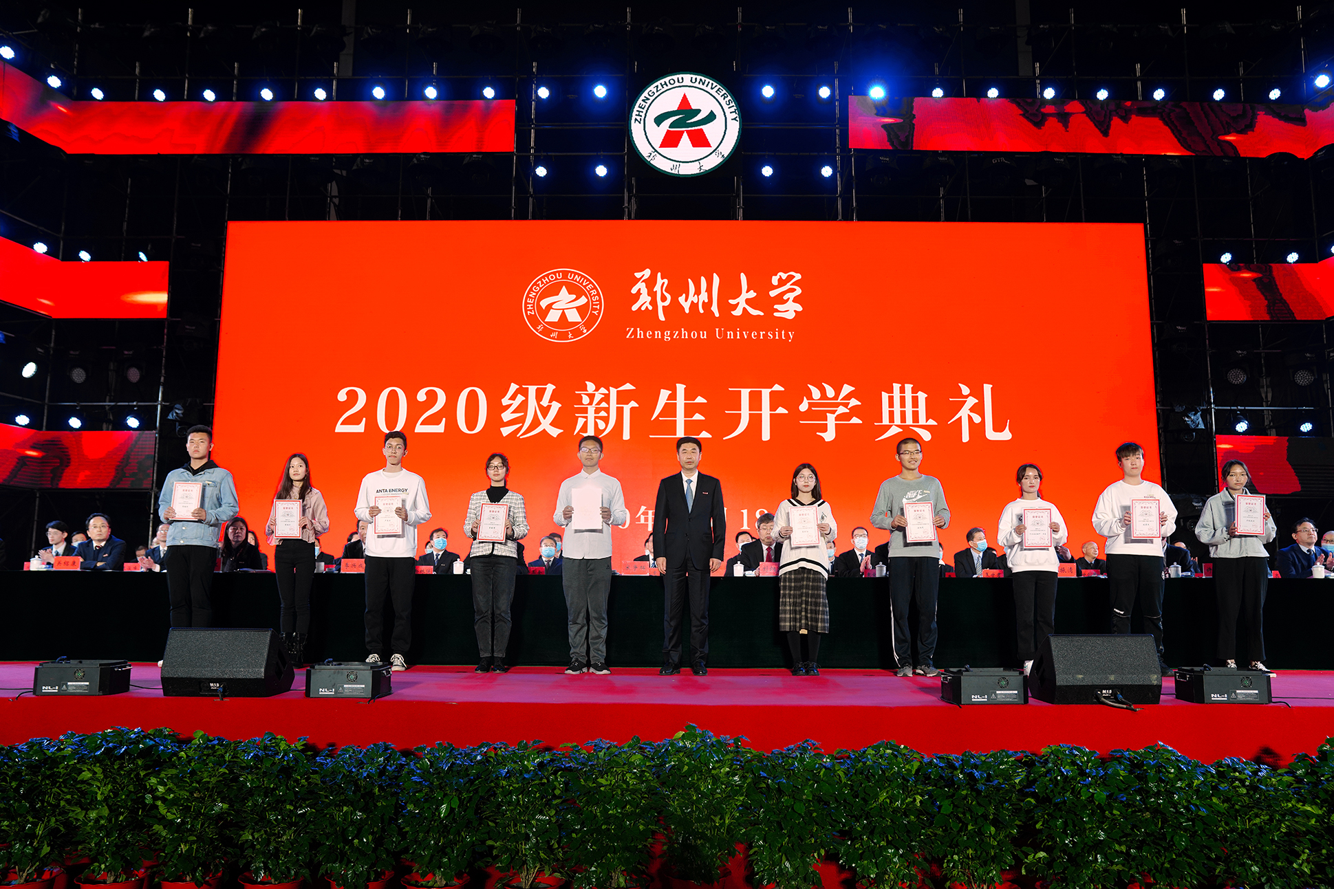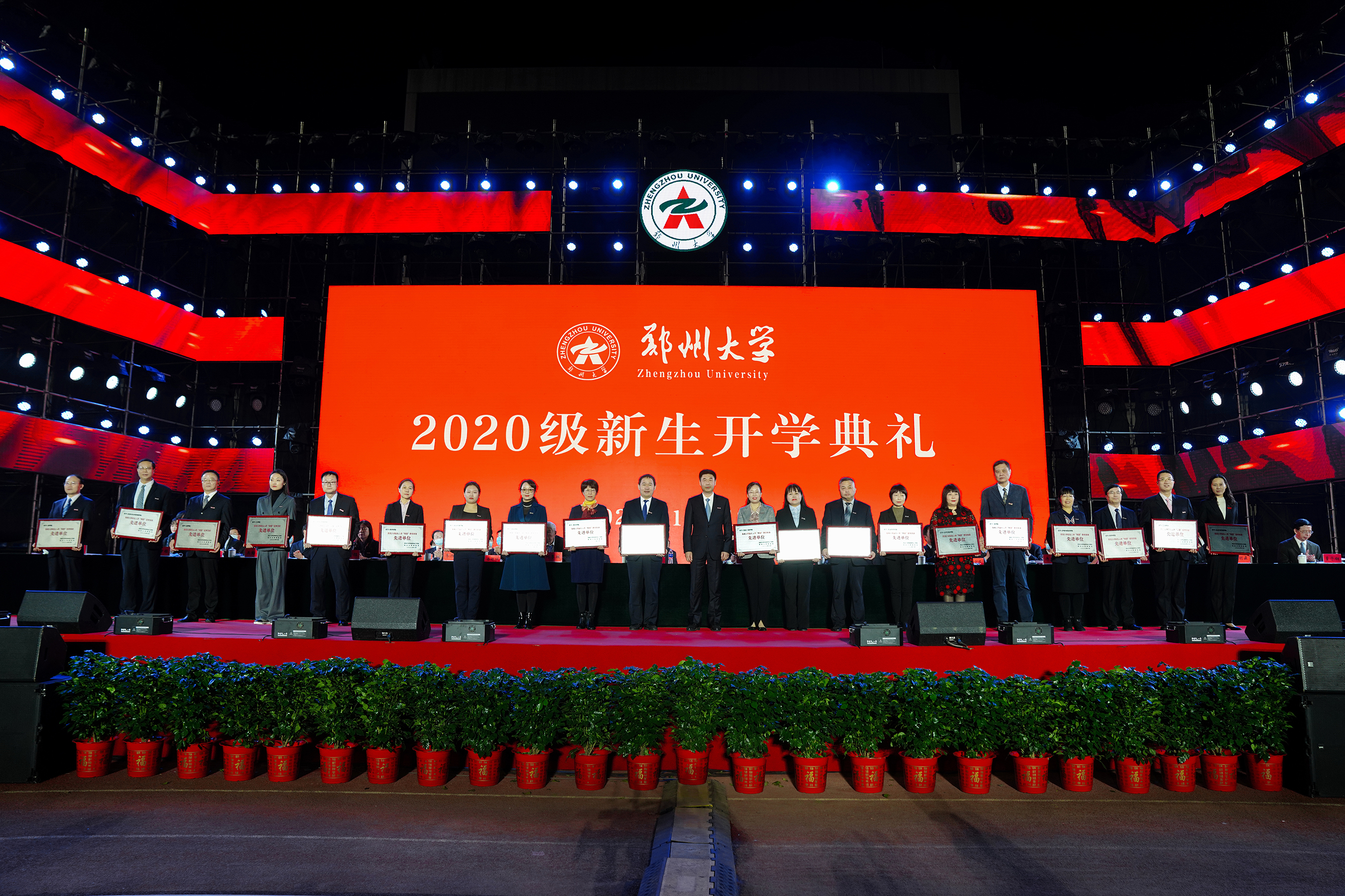 笃力向前,开启青春华彩篇章,志存高远,他日终成擎天栋梁。10月18日晚7点,beat365在线唯一官网2020级新生开学典礼在主校区本源体育场隆重举行。校领导宋争辉、刘炯天、王宗敏、李兴成、谷振清、张倩红、许东升、关绍康、韩国河、刘章锁、赵明皞、董子钢,中国工程院院士、材料科学与工程学院、河南省资源与材料工业技术研究院院长何季麟,教育部党建与思想政治工作联络员戚世钧,beat365在线唯一官网优质生源基地中学校长代表、校部机关主要负责同志、各院(系)主要负责同志,教师代表,2020级全体新生共同参加了活动。根据新冠肺炎疫情常态化防控要求,典礼采取线上与线下相结合的形式,主校区13100名2020级新生现场观礼,老校区和主校区校外住宿的6000余名新生云端观礼。校党委副书记、副校长王宗敏主持典礼。