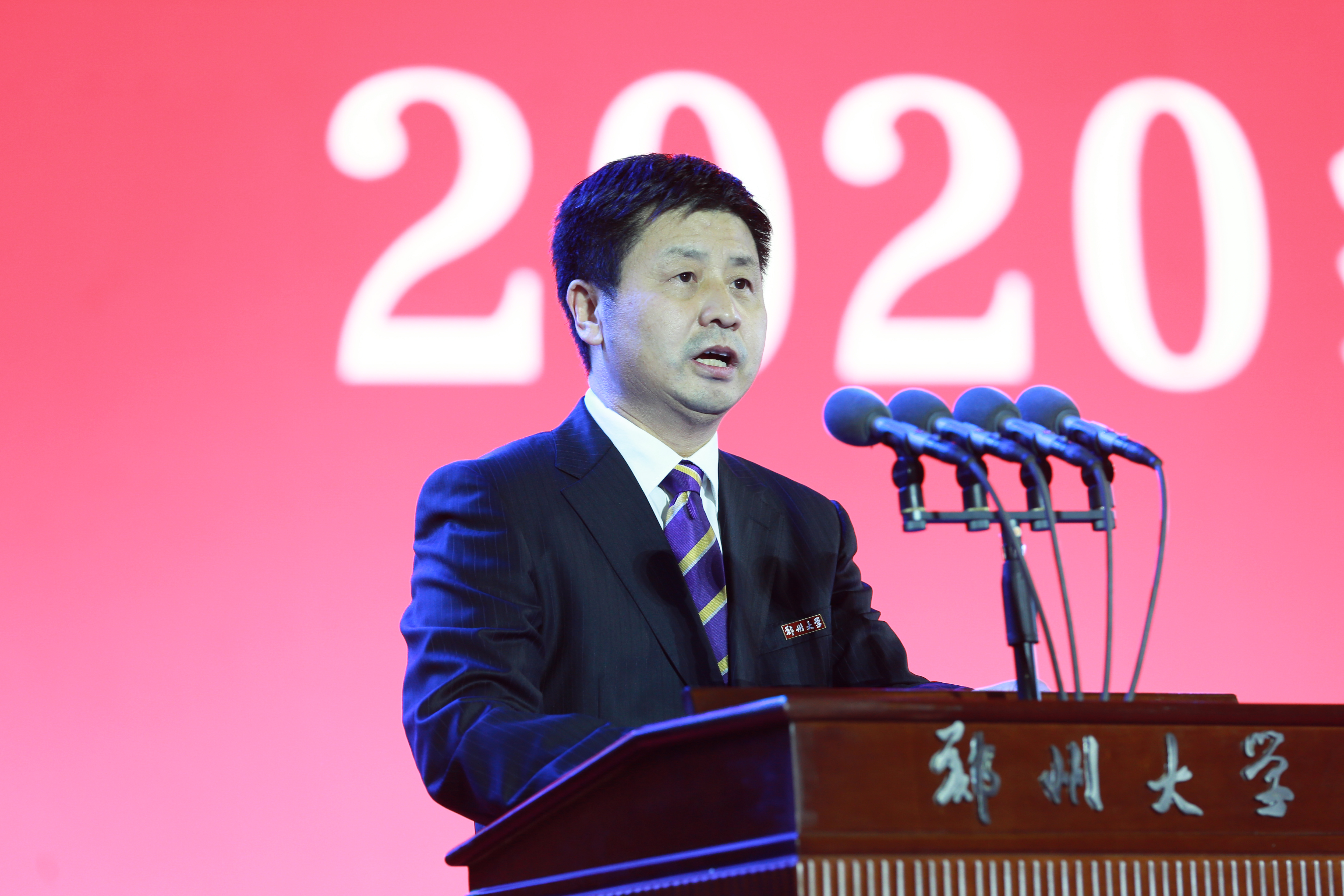 河南省政协副主席、beat365在线唯一官网校长刘炯天作了题为《晨钟声声东方红》的讲话。他代表学校向来自全国各地以及世界55个国家和地区的新生表示祝贺和欢迎。他指出,当前全球疫情依然肆虐,我们国家已取得疫情防控的重大胜利,现实是生动教材,我们要坚定信心增强力量,担当起责任,作为学校就要努力给大家营造良好学习环境与条件,让大家切实感受到“晨钟声声东方红”。