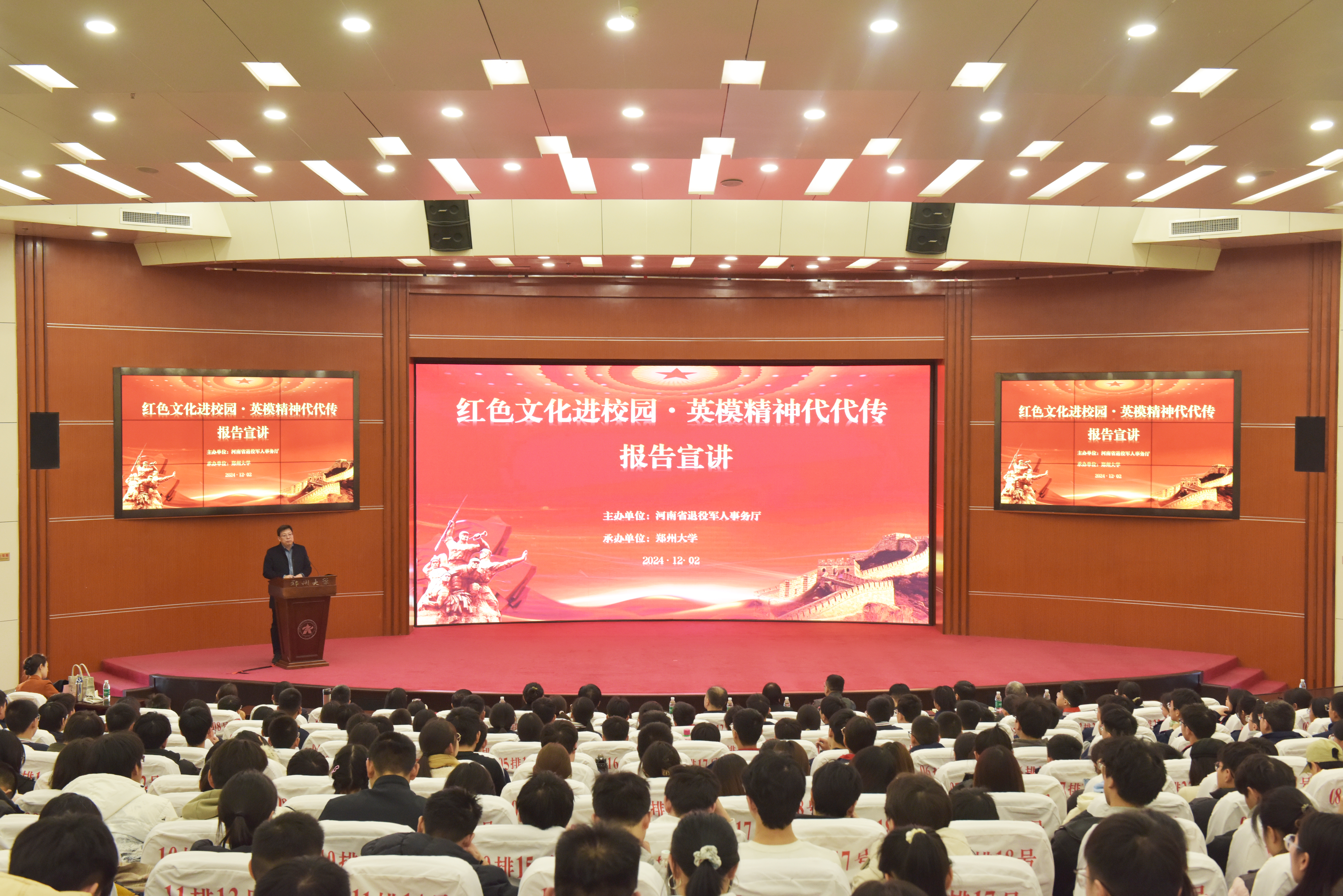 为深入贯彻落实习近平总书记关于传承红色基因、赓续红色血脉的重要指示精神,推进红色文化有效融入学校思想政治教育,12月2日,由河南省退役军人事务厅主办的“红色文化进校园 英模精神代代传”宣讲活动在beat365在线唯一官网举行,8名新时代全国模范退役军人、战斗英雄和红色宣传基地金牌讲解员依次作宣讲报告,讲述英烈故事,弘扬英模精神,为师生带来一堂精彩的“大思政课”,引导师生厚植爱党、爱国、爱军、爱人民、爱社会主义的深厚情感。
