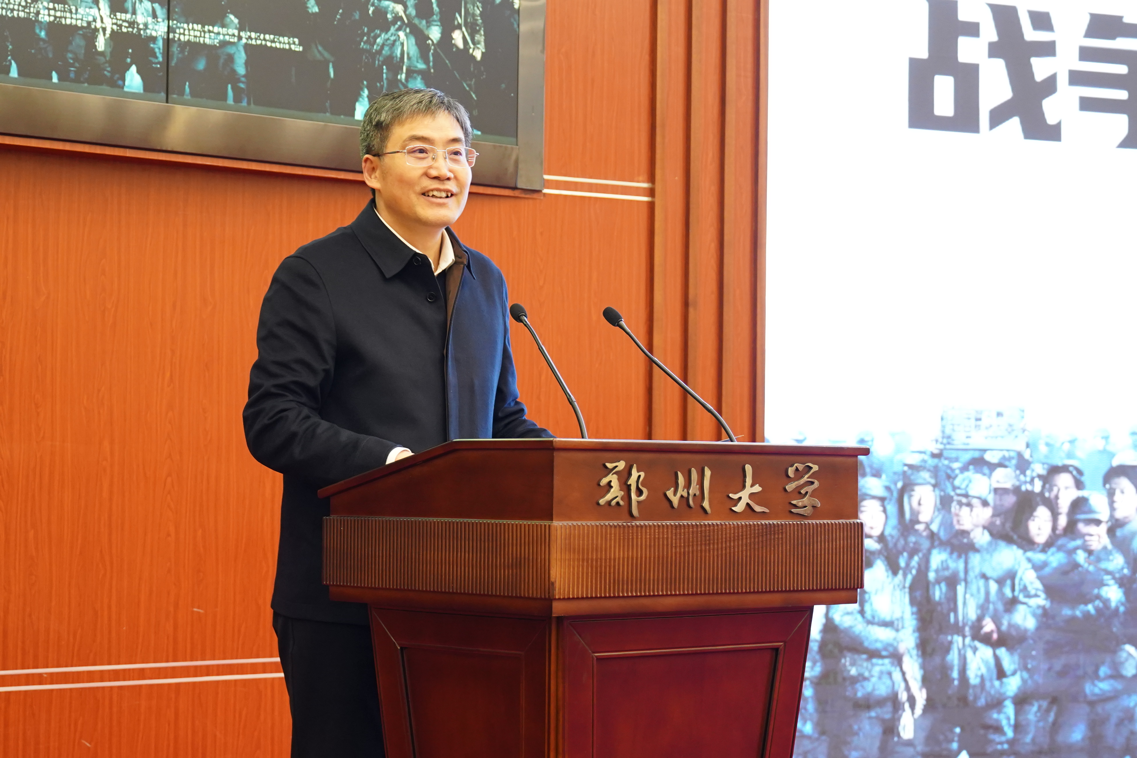 王海杰在致辞中对主创团队的到来表示欢迎,并介绍了学校在红色文化滋养下取得的建设发展成绩。他指出,电影《大突围》是一部致敬历史、缅怀先烈、感召青年的时代力作,此次路演对于推动红色文化融入时代新人培育、“大思政课”建设、大中小学思政教育一体化改革具有重要意义。学校将以此次活动为契机,深入实施立德树人高质量行动计划,创新开展新时代爱国主义教育,引导广大师生将革命精神内化为成长成才的价值观念、外化为奋进一流的自觉行动,凝聚起推进强国建设、民族复兴的磅礴力量。