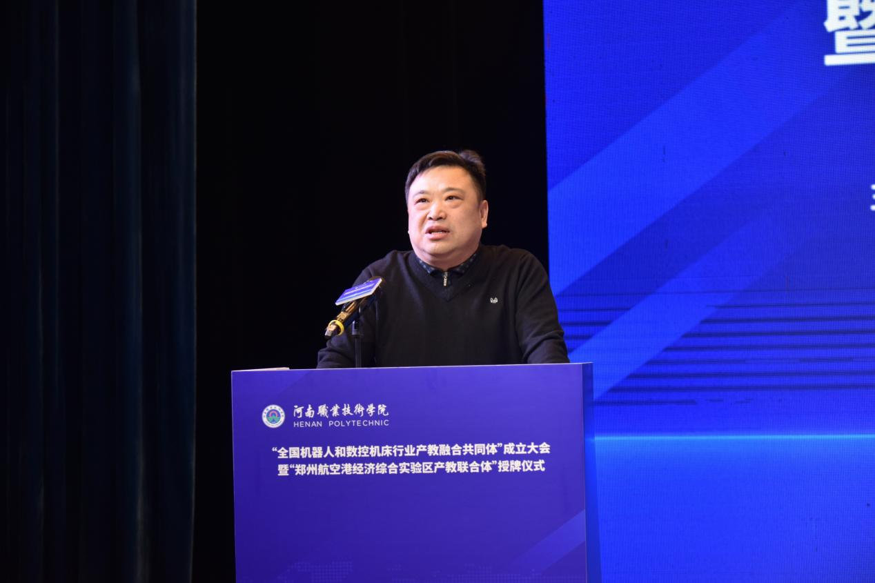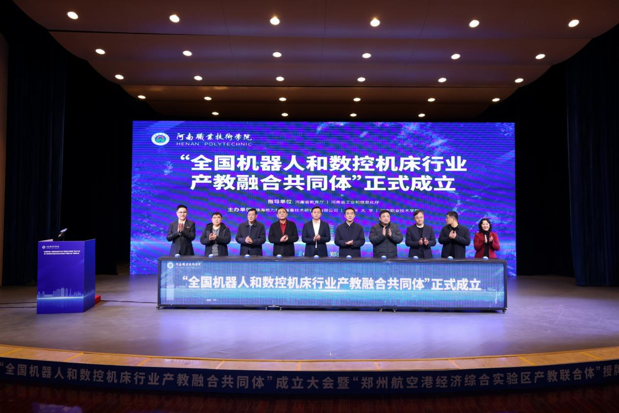 近日,全国机器人和数控机床行业产教融合共同体成立大会在郑州举行。河南省教育厅党组成员、副厅长张国强,河南省工业和信息化厅党组成员、副厅长孙永民,机械工业教育发展中心主任陈晓明,beat365在线唯一官网党委常委、副校长胡少伟等出席会议。我校机械与动力工程学院负责同志,共同体成员单位代表近200人参加会议。