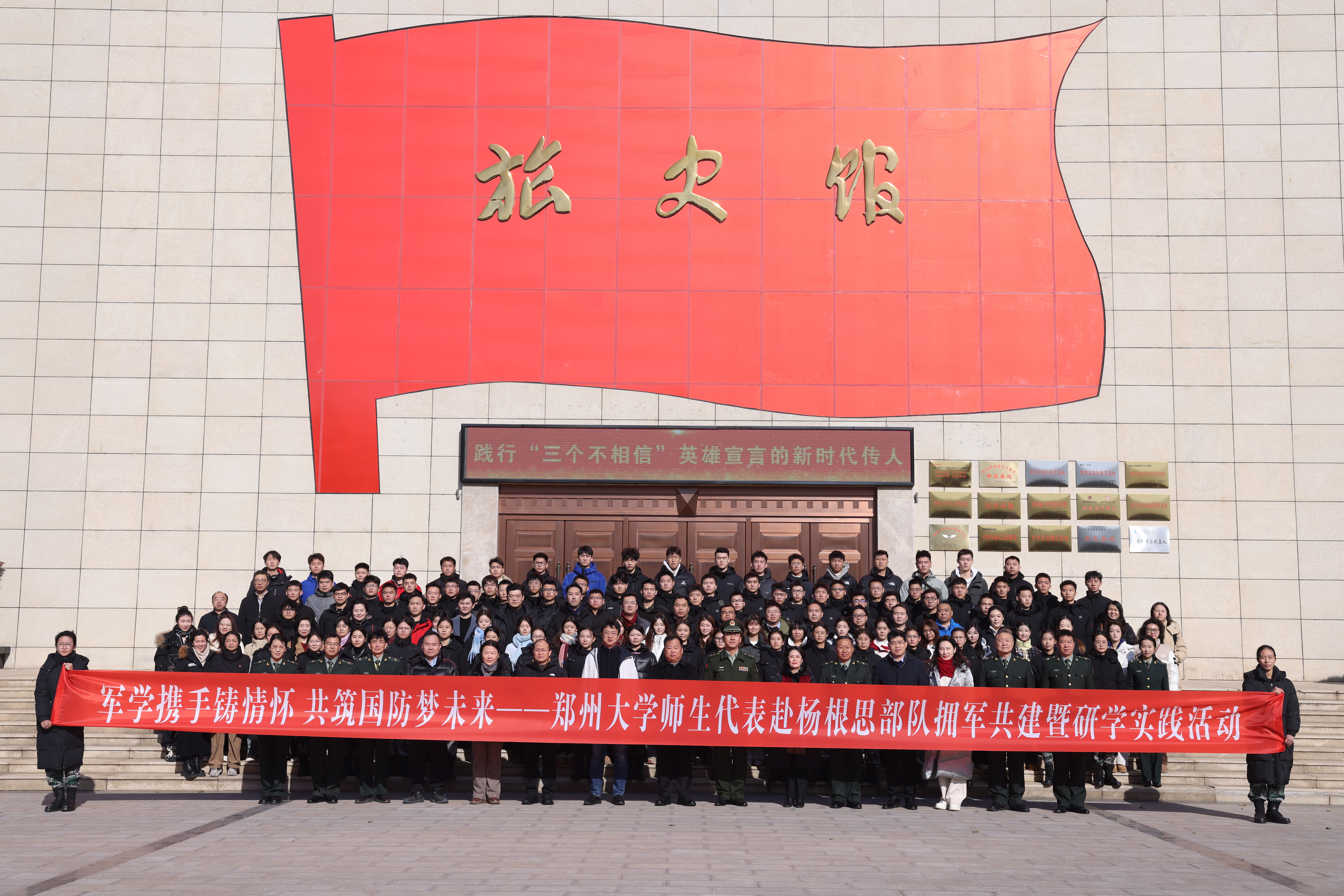 此次拥军共建暨研学实践活动,是学校落实立德树人根本任务、构建“五育并举”育人体系的具体举措,是推动形成校、军协同育人共同体模式、构建立体化国防思政体系的实际行动,激励广大师生从“三个不相信”战斗精神中汲取前进智慧和力量,挺膺担当,扛起“强国建设、郑大有为”的时代责任,奋力推进学校一流大学建设再上新台阶!
