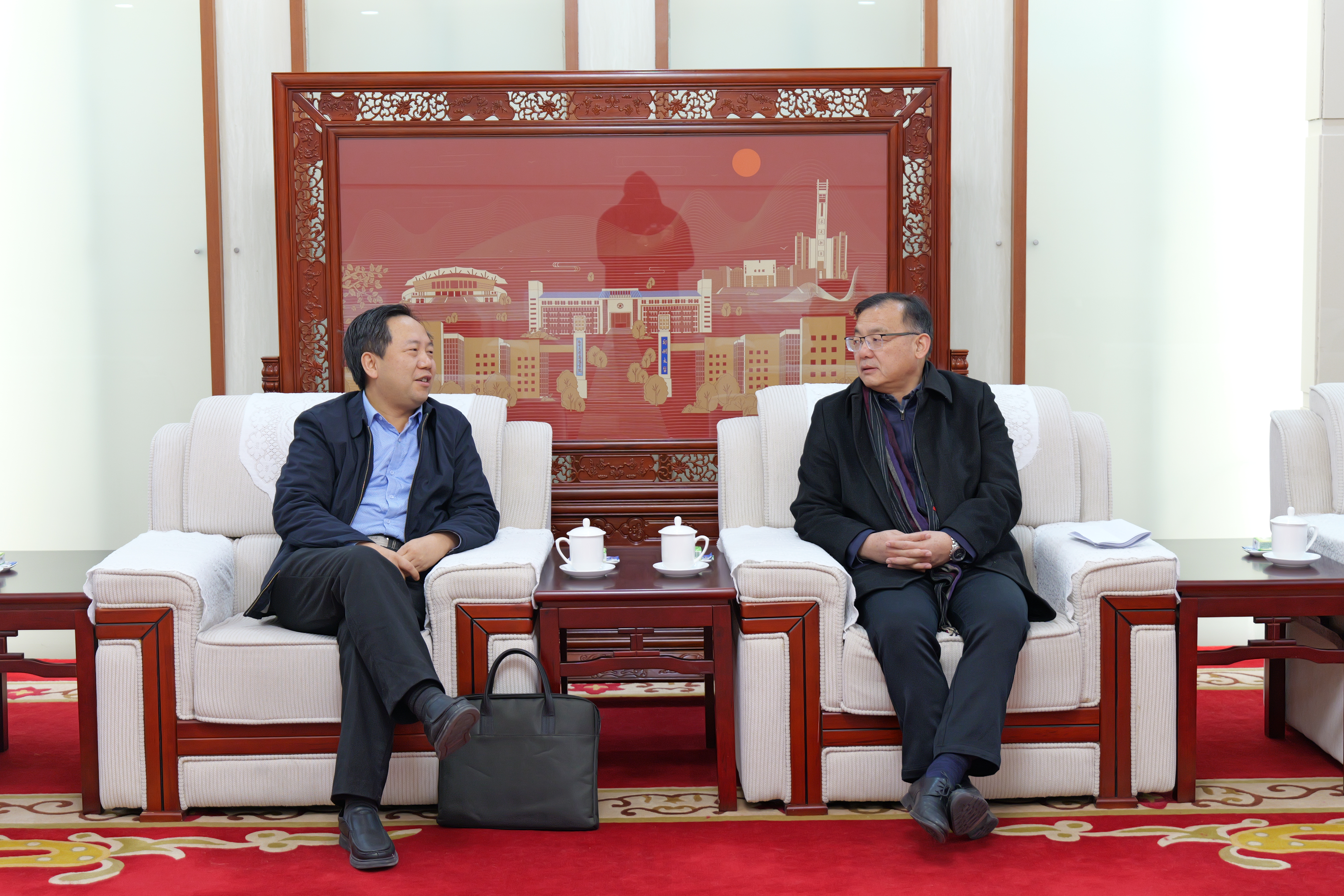 韩国河对河南省委统战部长期以来对beat365在线唯一官网的关心和支持表示感谢,并简要介绍学校办学特色、人才队伍建设和统一战线工作情况。陈照顺对beat365在线唯一官网统战工作给予充分肯定,强调要加强和改进工作,强化平台建设、政策支持,充分发挥党外知识分子在科技创新、成果转化、服务国家发展战略、服务河南经济社会发展等方面的优势和作用。双方就如何进一步加强党外代表人士队伍建设、进一步推动党外知识分子作用发挥进行深入交流。