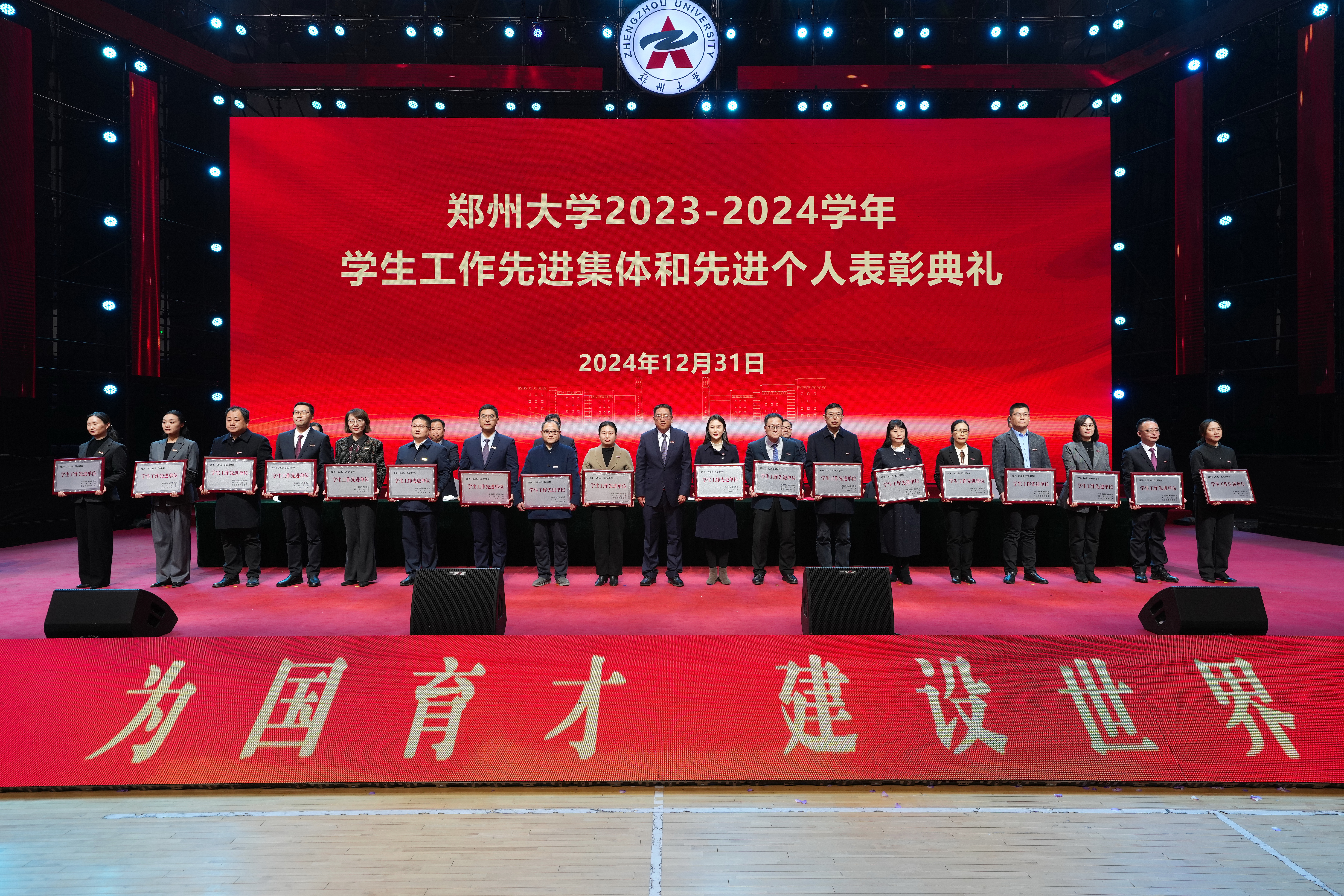 校党委副书记王利国讲话,他表示,2024年学生工作以习近平新时代中国特色社会主义思想为指引,坚持“为党育人 为国育才”,落实立德树人根本任务,将新时代立德树人工程和拔尖创新人才培育工程作为两条主线贯穿工作全局,奋力推动事业高质量发展,取得了丰硕的成果。他指出,一年来,学校初心如磐,迈出落实立德树人根本任务新步伐;矢志不渝,努力实现创新人才培养质量新提升;守正创新,着力推动学生成长服务展现新作为;目标一流,奋力提升学工队伍高质量发展新格局。他要求,全校学生工作在新的一年要高举旗帜,不断增强学生思想政治工作的引领力;要志存高远,奋力打造创新人才培养郑大范式;要严管厚爱,全面赋能辅导员队伍高质量发展。面对新征程,学生工作要强化责任意识、担当意识,积极融入学校一流大学建设发展大局,笃行实干,推动事业不断向前。