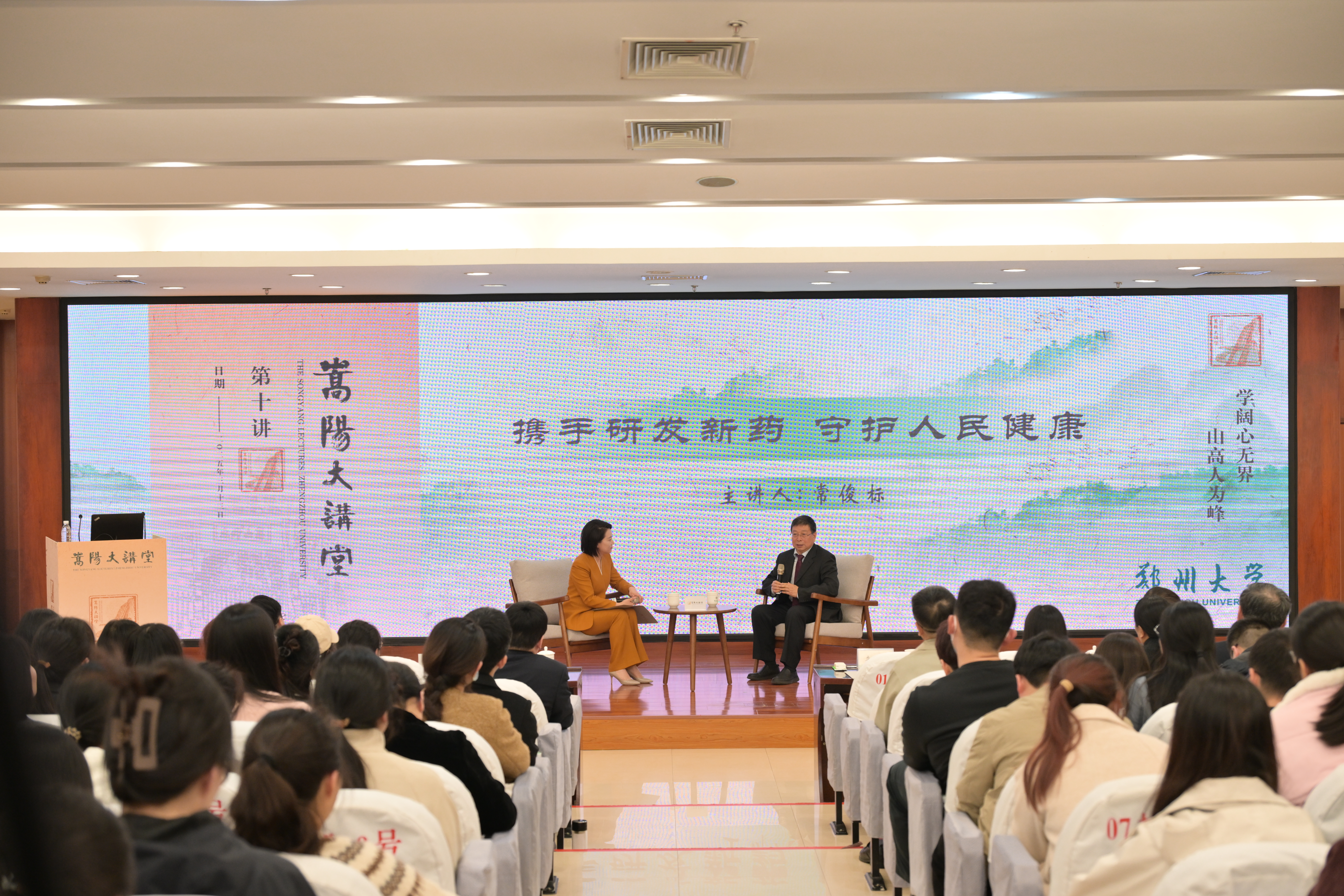 创新药研发有什么重要意义?常俊标以《携手研发新药,守护人民健康》为题,从战略意义、亟需突破的关键技术以及精准药物设计的核心方向三个维度向大家分享了他的科研感悟:“在创新药的星辰大海,为患者打造生命之光。”他以发现青蒿素等为例,讲述了我国在新药研发领域取得的成绩及面临的挑战,指出“自己的问题,要自己想办法解决”,必须要有“从0到1的突破”,才能让创新药“贴上‘中国药’标签”,在重大疾病领域实现“从跟跑到领跑”的跨越。他还回顾了自己留学归国、传承师恩的成长经历,以及带领团队研发出我国首个抗新冠病毒小分子口服药“阿兹夫定”的故事,激励广大师生提升解决“卡脖子”问题的原始创新能力,践行“守护人民生命健康”初心使命,积极服务“健康中国”战略。
