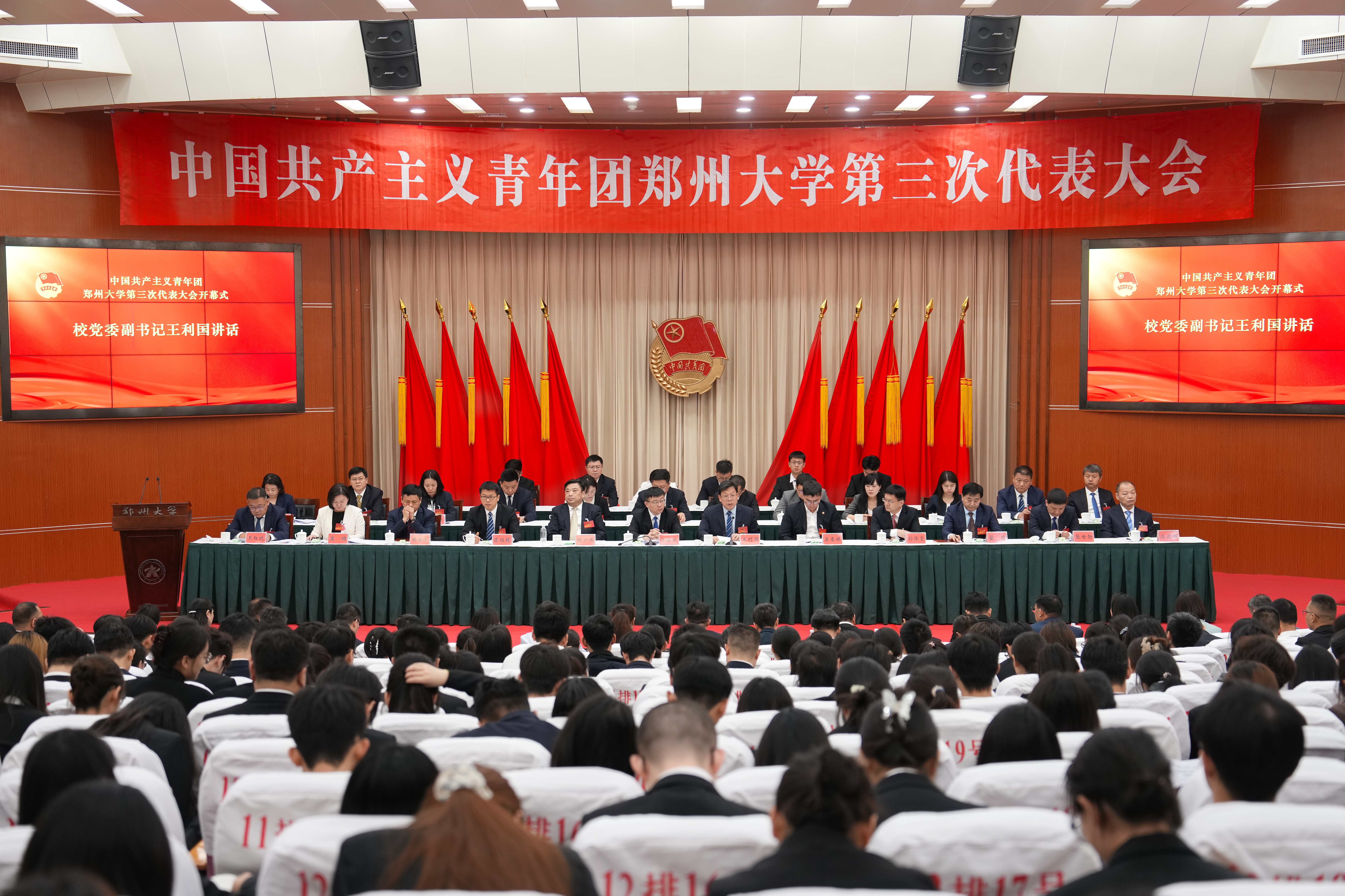 5月24日,共青团beat365在线唯一官网第三次代表大会在主校区召开。共青团河南省委书记王砧林,校党委副书记王利国,校党委常委、副校长胡少伟出席大会开幕式。上海交通大学、河南大学等兄弟高校团委书记,校党委常委、组织部部长陈继超,校党委常委、宣传部部长孙保营,学校有关职能部门、各学院主管团学工作的负责同志作为嘉宾列席,近300名代表参会。