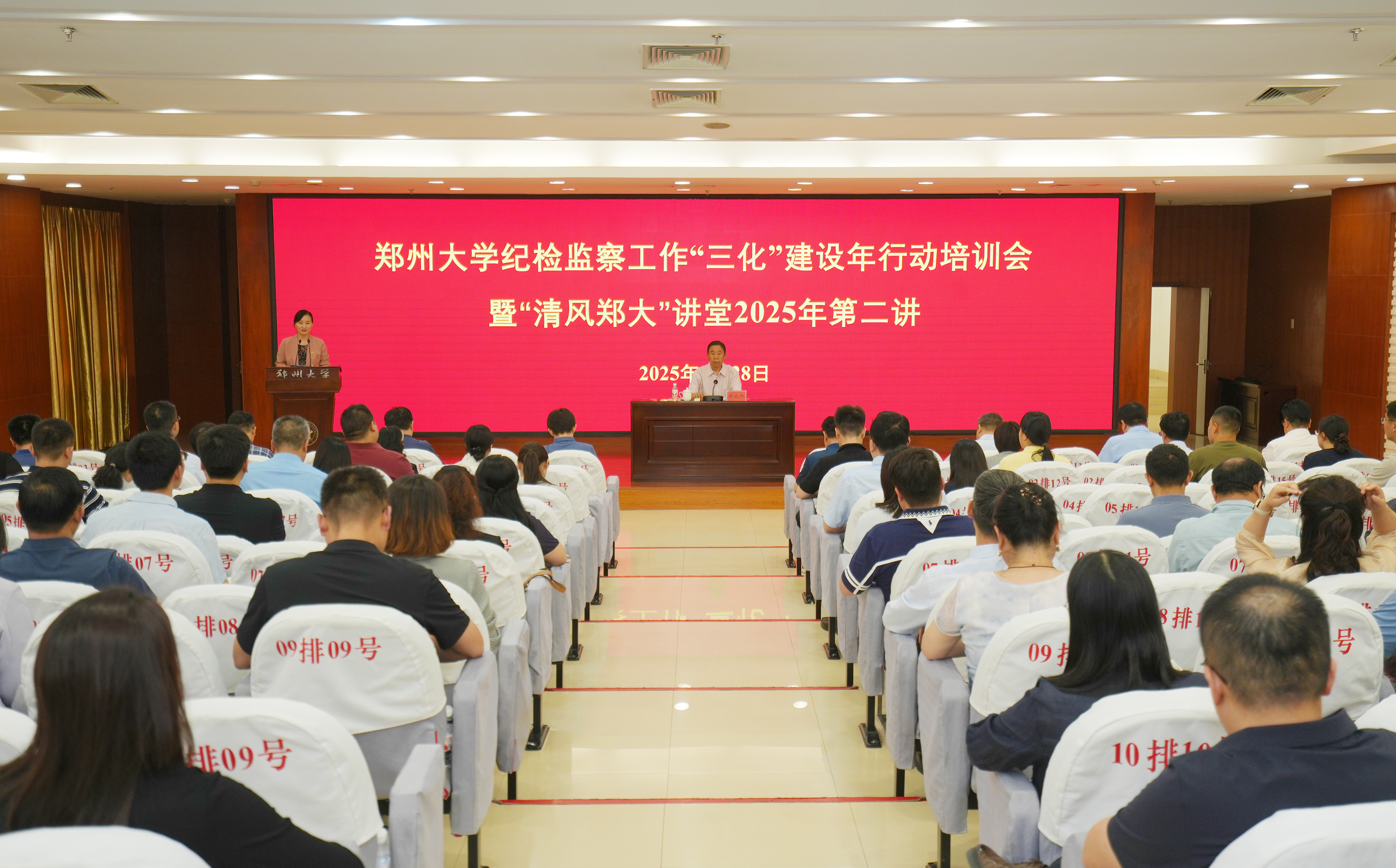5月28日,beat365在线唯一官网在主校区举办纪检监察工作“三化”建设年行动培训会暨“清风郑大”讲堂2025年第二讲,邀请省纪委原常委韩兆印授课。校纪委委员,各基层纪委书记(纪检委员),校纪委机关全体纪检监察干部,党委巡察机构全体干部,附属医院全体纪检监察干部等100余人参加。会议由校党委常委、纪委书记、监察专员陈曦主持。