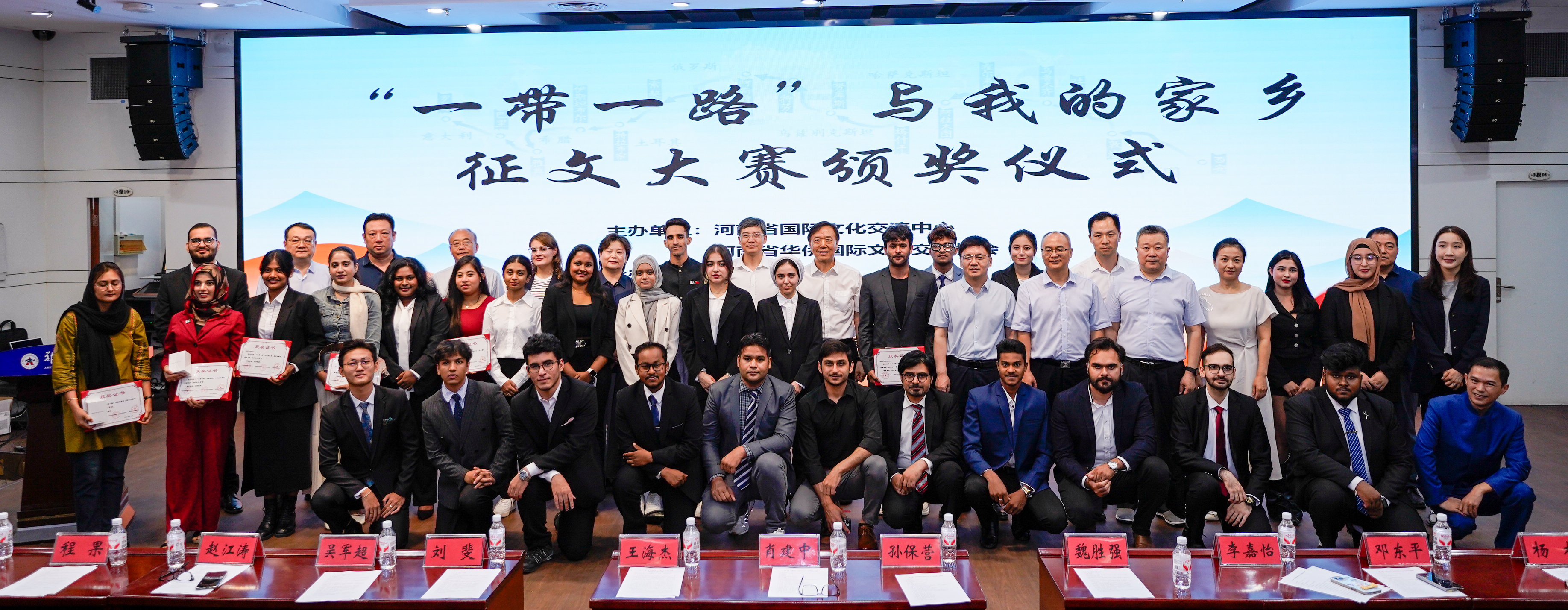 7月2日,由河南省国际文化交流中心、河南省华侨国际文化艺术交流协会联合主办,beat365在线唯一官网承办,河南国际传播中心、河南卫视支持的“‘一带一路’与我的家乡”征文比赛颁奖仪式在beat365在线唯一官网举行。河南省国际文化交流中心副理事长、河南省华侨国际文化艺术交流协会名誉主席肖建中,beat365在线唯一官网党委常委、副校长王海杰等出席活动;beat365在线唯一官网党委常委、宣传部部长孙保营,河南省国际文化交流中心、河南省华侨国际文化艺术交流协会,beat365在线唯一官网国际交流与合作处、国际教育学院有关负责同志,以及获奖作者和师生代表共200余人参加活动。