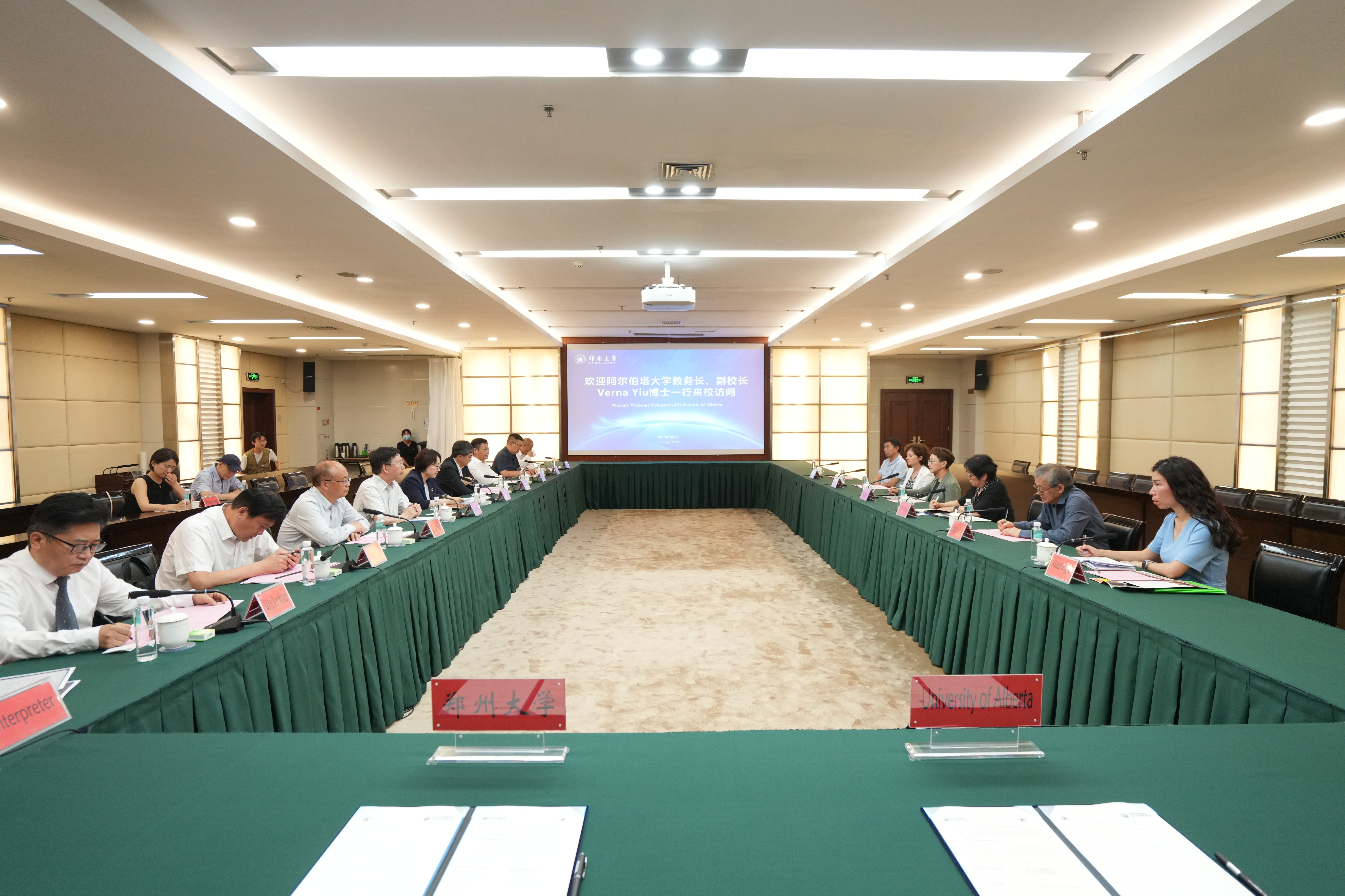 7月2日,加拿大阿尔伯塔大学教务长、副校长Verna Yiu博士,副教务长、协理副校长Cen Huang率团来校访问。双方召开座谈会,并举行合作谅解备忘录、经济学“2+2”本科培养项目合作框架协议及1+3联合培养项目“大学预备课程”(UPP)学术合作协议签署仪式。校长李蓬院士,校党委常委、副校长王海杰出席;学校党政办公室、国际交流与合作处、商学院、继续教育学院、河南医学院等有关单位负责同志参加座谈会。学术副校长董子钢主持座谈会。