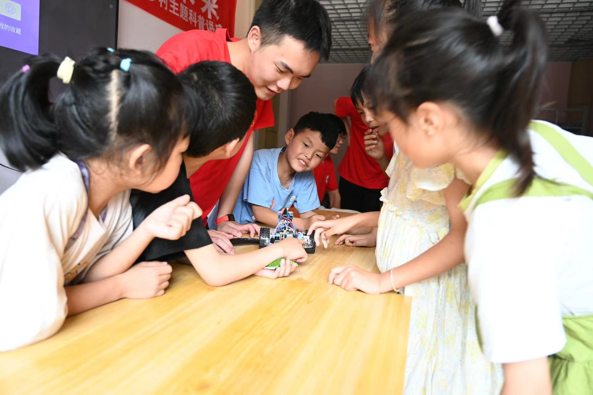 青春行沃野,科普启新篇。物理学院科普志愿服务队充分发挥专业优势,精心策划一系列兼具科学性与趣味性的实验,让孩子们在玩乐中触摸科学、爱上科学,以青春之行传播“爱国、创新、求实、奉献”的科学火种。电气与信息工程学院实践团队在当地开展“电子产品义修”活动,并举办AI科普活动,实践队员指导孩子们亲手操控基于STM32的智能小车,让孩子们近距离感受科学魅力。材料科学与工程学院实践团队从生活中随处可见的物品入手,用通俗易懂的语言为孩子们讲解不同材料的特性,同时用虚拟形象“小明同学”带领孩子们参观beat365在线唯一官网,领悟科研人员深耕材料领域的精神。
