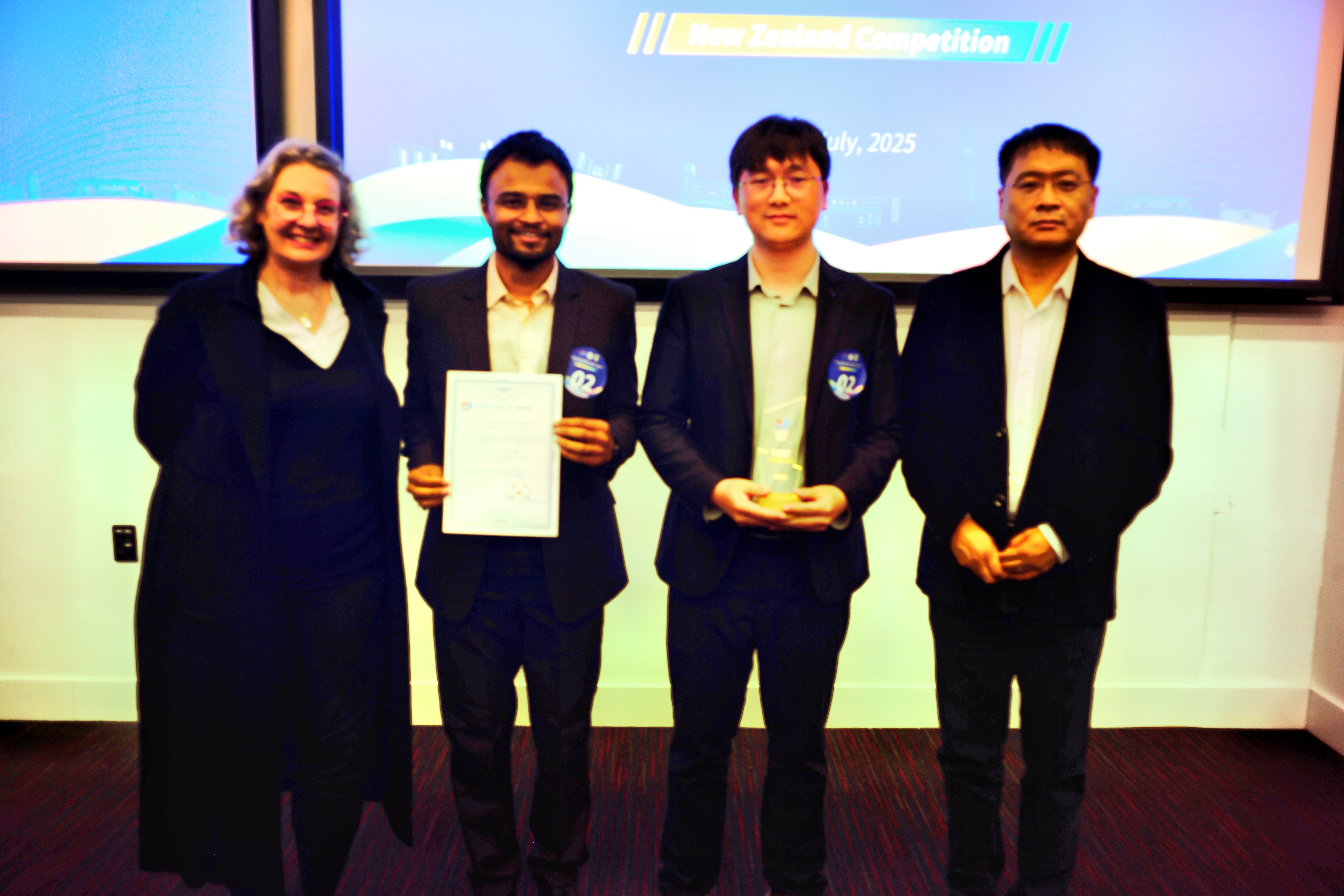 中国驻新西兰使馆二等秘书万丁、beat365在线唯一官网学术副校长杨天若、惠灵顿维多利亚大学建筑与设计创意学院院长罗宾·菲普斯(Robyn Phipps)等出席颁奖仪式。组委会特邀来自奥克兰大学高唯院士、惠灵顿维多利亚大学张孟杰院士等新西兰10位知名专家组成评审团,共同围绕项目的创新性、可行性、产业价值等维度展开细致评估。