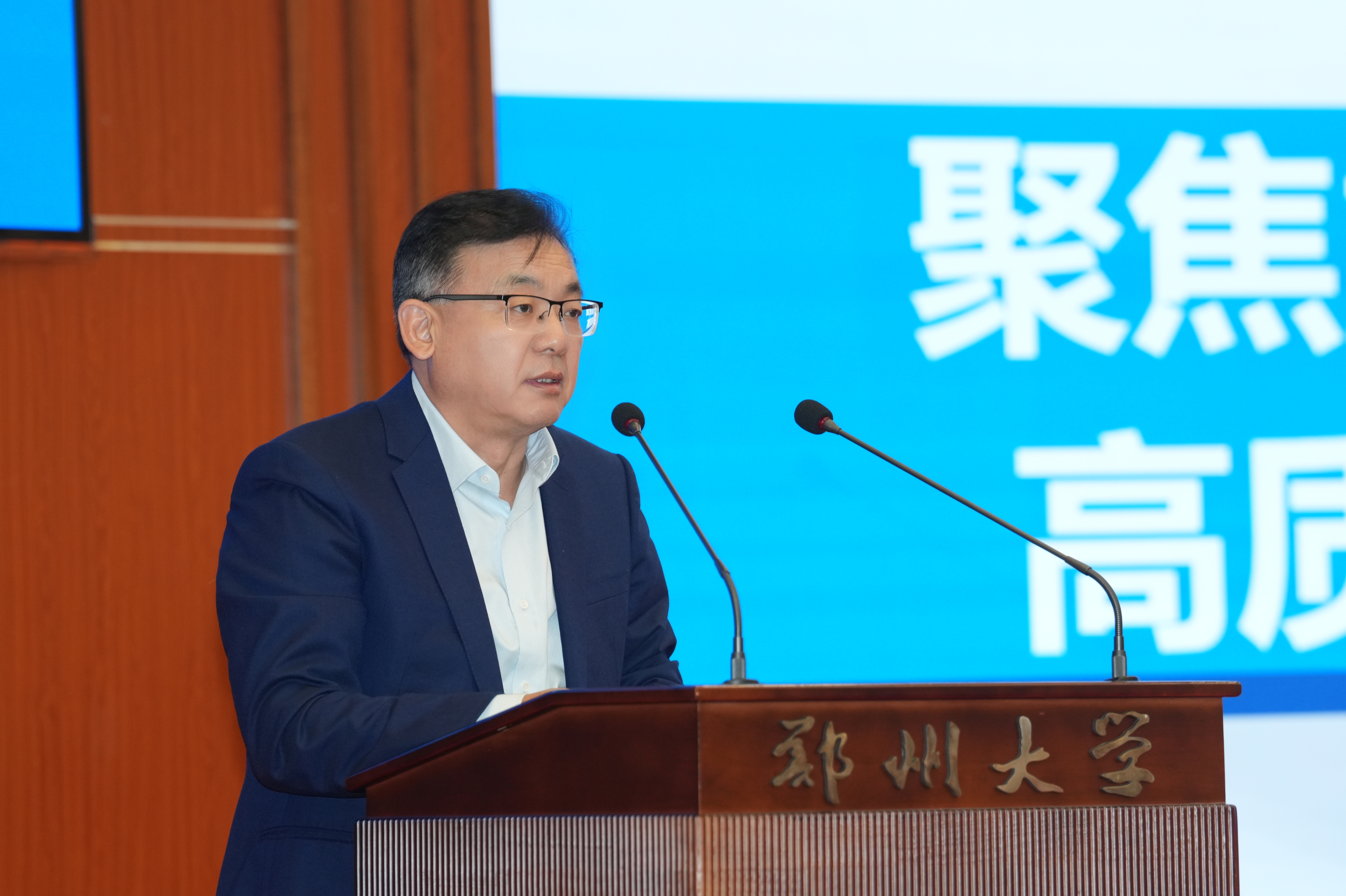 校长李蓬院士以《聚焦重点工作 持续加压奋进 高质量完成创新突破年任务》为题作讲话,回顾年度重点工作进展,分析学校面临机遇和挑战,安排部署新学期重点工作。她指出,今年以来,学校深入贯彻落实习近平总书记考察河南时的重要讲话精神,按照教育强国建设规划纲要和三年行动计划部署,聚焦“1+2+4+N”目标任务体系,重点推进党建引领、立德树人、学科提升、科研创新、人才引育、开放办学、治理优化、服务保障“八大突破”,事业发展取得显著成效。她表示,要准确把握教育强国建设新布局新要求和高等教育发展新形势新趋势,更加突出质量、贡献和特色,持续深化内涵式、高质量、可持续发展,彰显面向全球学术竞争的决心、服务国家重大战略的担当、引领区域创新发展的作为和传承守护中华文明的情怀,努力成为值得国家信赖、值得河南重托、值得人民期待的卓越大学。她强调,下半年是“十四五”和“双一流”二期建设收官期,也是“十五五”谋划关键期,必须站位教育强国建设,坚持中国特色、全球卓越的目标,全力推动重点任务落实落地,为高起点布局“十五五”奠定更加坚实根基。一要冲刺完成国创赛筹办和审计整改“两大检验”,提升办学国际影响力和内部治理效能。二要扎实推进“十五五”规划编制、“四大计划”资源配置和学科画像评估“三大谋划”,力争在大人才、大项目、大成果上实现新突破。三要深化本科教育教学、研究生培养模式改革,“AI+”布局、未来科学与技术学院建设、人才方阵优化“五项改革”,促进教育科技人才融合发展。四要建好高能级科研、成果转化和基础支撑“三大平台”,打造集聚成果、引育人才与服务产业的创新高地。五要强化外部资源拓展、内部资源挖潜和安全底线“三个支撑”,夯实学校高质量发展的底座。她强调,全体干部职工要秉持“一群人干一件事、一件事干很多年”理念,坚持全局抓重点、大事善谋划、落实重细节,推动一流大学建设再上新台阶。