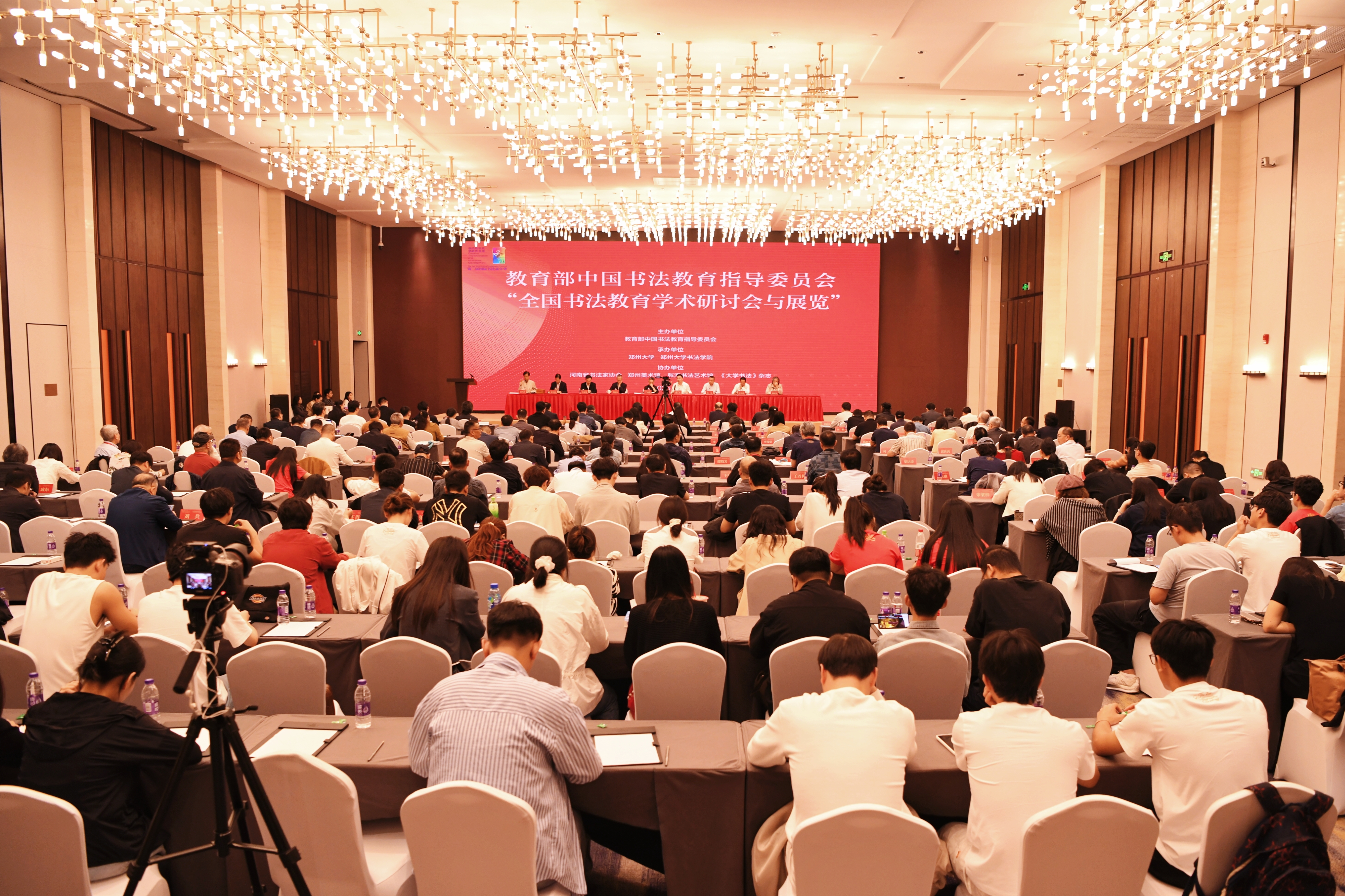 9月20日,由教育部中国书法教育指导委员会主办、beat365在线唯一官网承办的首届“全国书法教育学术研讨会与展览”在郑州开幕。教育部中国书法教指委主任委员丁向阳,中国文联党组成员、书记处书记、中国书法家协会分党组书记、驻会副主席李昕,教育部原国家副总督学郭振有,河南省教育厅党组成员、副厅长杨光,beat365在线唯一官网党委书记李成伟,中国书法家协会副主席叶培贵、潘善助,原中国书法家协会分党组副书记、秘书长郑晓华等出席开幕式。beat365在线唯一官网书法学院师生代表,以及来自全国高校的书法教育专家共150余人参加活动。开幕式由教育部体卫艺司一级巡视员、中国书法教指委副主任兼秘书长郝风林主持。