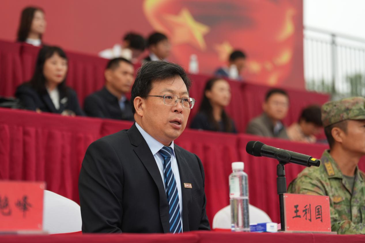 王利国代表学校向承训部队赠送锦旗,在讲话中向2025级学生军训圆满完成表示祝贺,向全体承训教官和工作人员表示感谢。他指出,军训是贯彻习近平强军思想、深化全民国防教育的重要举措,是落实立德树人根本任务、培养高素质人才不可或缺的重要环节。学校各部门协同配合、精心实施,军事训练科学有序、思想教育入脑入心、各项保障周全到位,完成了各项既定任务。他强调,军训是个大熔炉、大课堂,磨砺意志、锤炼品格。三周来,同学们不畏困难,积极应变,真正做到条件受限而标准不降、环境多变而斗志不减,为大学生活交上了一份出色的开局答卷。他勉励同学们,要坚定理想信念、练就过硬本领、勇于创新创造,并向全体新生发出心灵三问:“十月承办大赛,是否愿意积极参与奉献?学校‘双一流’建设,是否愿意争当表率?党和国家需要,是否愿意挺身而出?”——“愿意!愿意!愿意!”万众齐声,响彻云霄,以青春誓言回应时代重任,生动彰显了郑大学子“今日雨中淬火,明日强国栋梁”的青春担当!(张宁 王展颜 摄影)