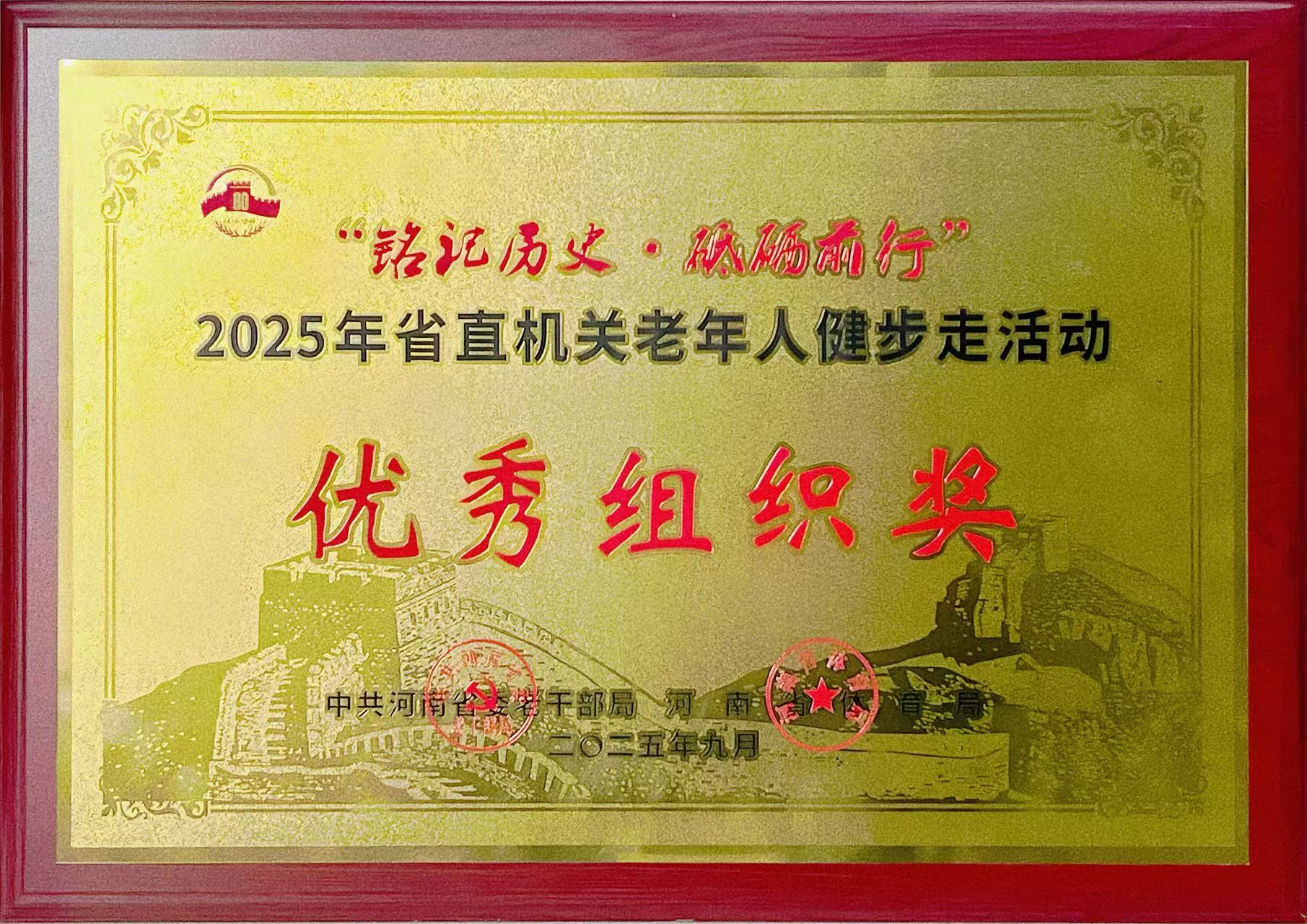 近日,2025年省直机关老年人“铭记历史·砥砺前行”健步走活动在平原示范区举行。该活动由中共河南省委老干部局、河南省体育局主办,河南省直属机关老年人体育协会承办,2000余名省直各单位、省管驻郑高校离退休老干部积极参与,我校组织退休教职工代表队参加活动,并荣获“优秀组织奖”。