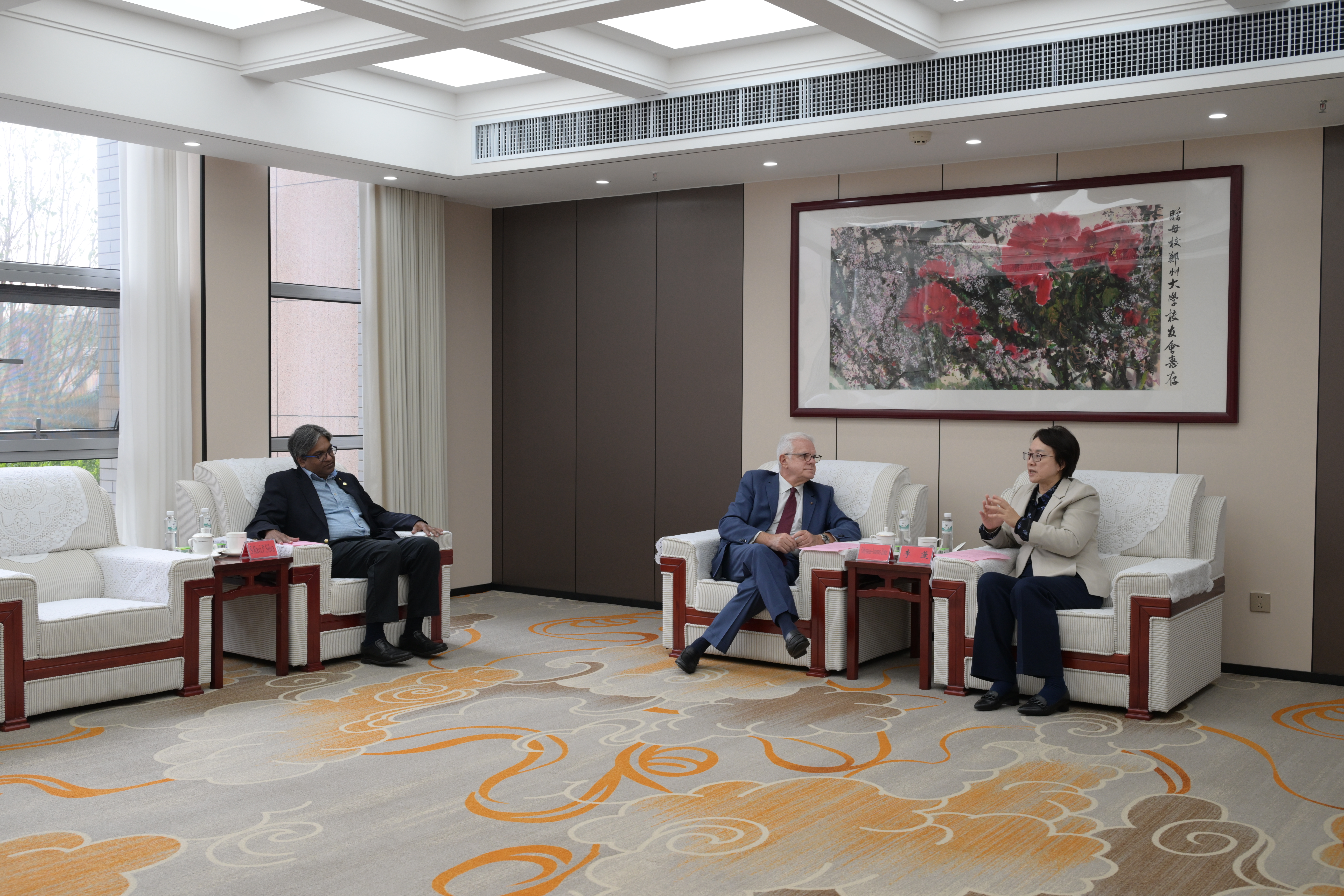 10月16日,希腊基尔大学校长奥德西亚斯·洛恩尼斯·佐拉斯(Odysseas-loannis Zoras)院士与英国萨里大学拉维·席尔瓦(S.Ravi.P.Silva)院士来校访问。校长李蓬院士会见来访客人,学校党政办公室、国际交流与合作处负责同志参加会见。