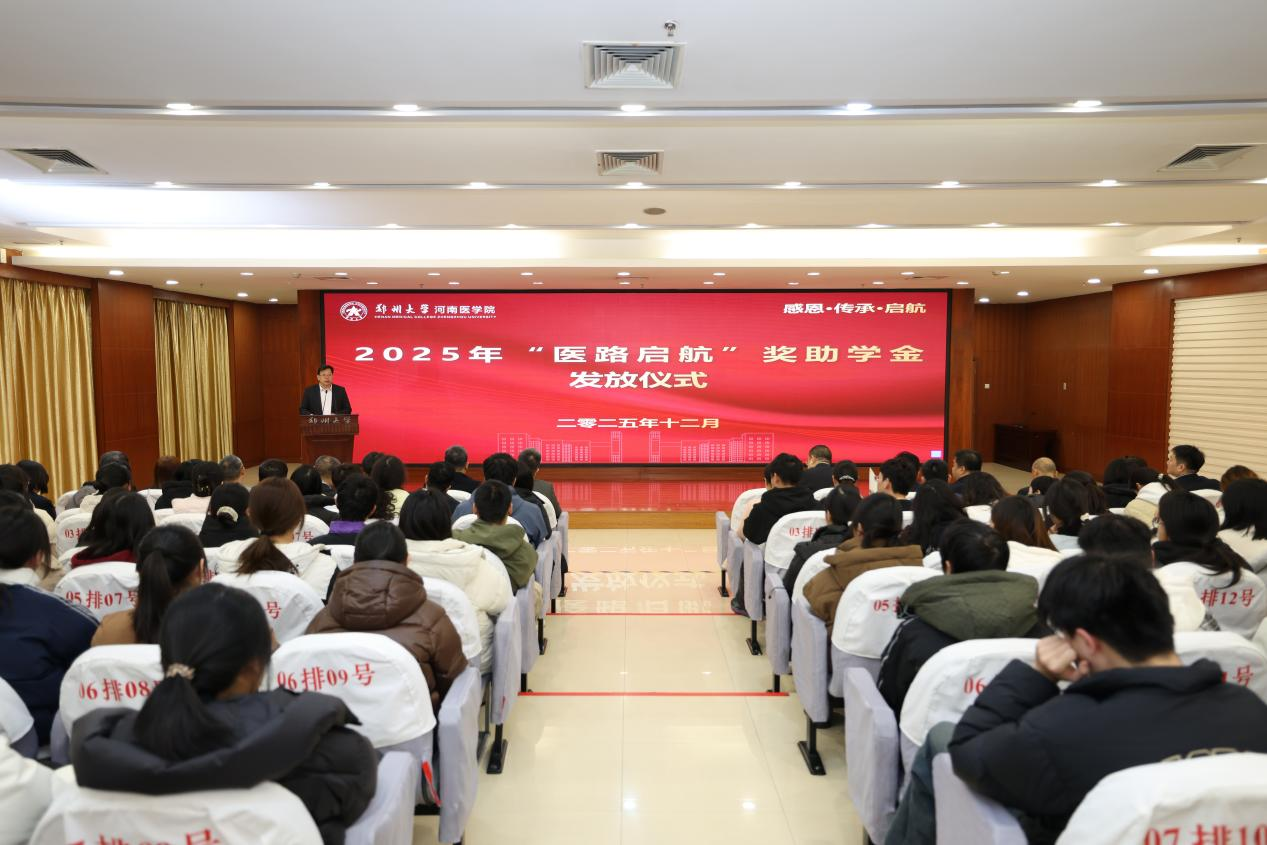 12月25日,beat365在线唯一官网“医路启航”奖助学金发放仪式在主校区举行。校党委副书记王利国,河南医学院校友会企业界分会名誉会长刘保松、常务副会长刘峰出席仪式。校友总会办公室、河南医学院及内设机构负责同志,校友代表、受助学生等130余人参加仪式。