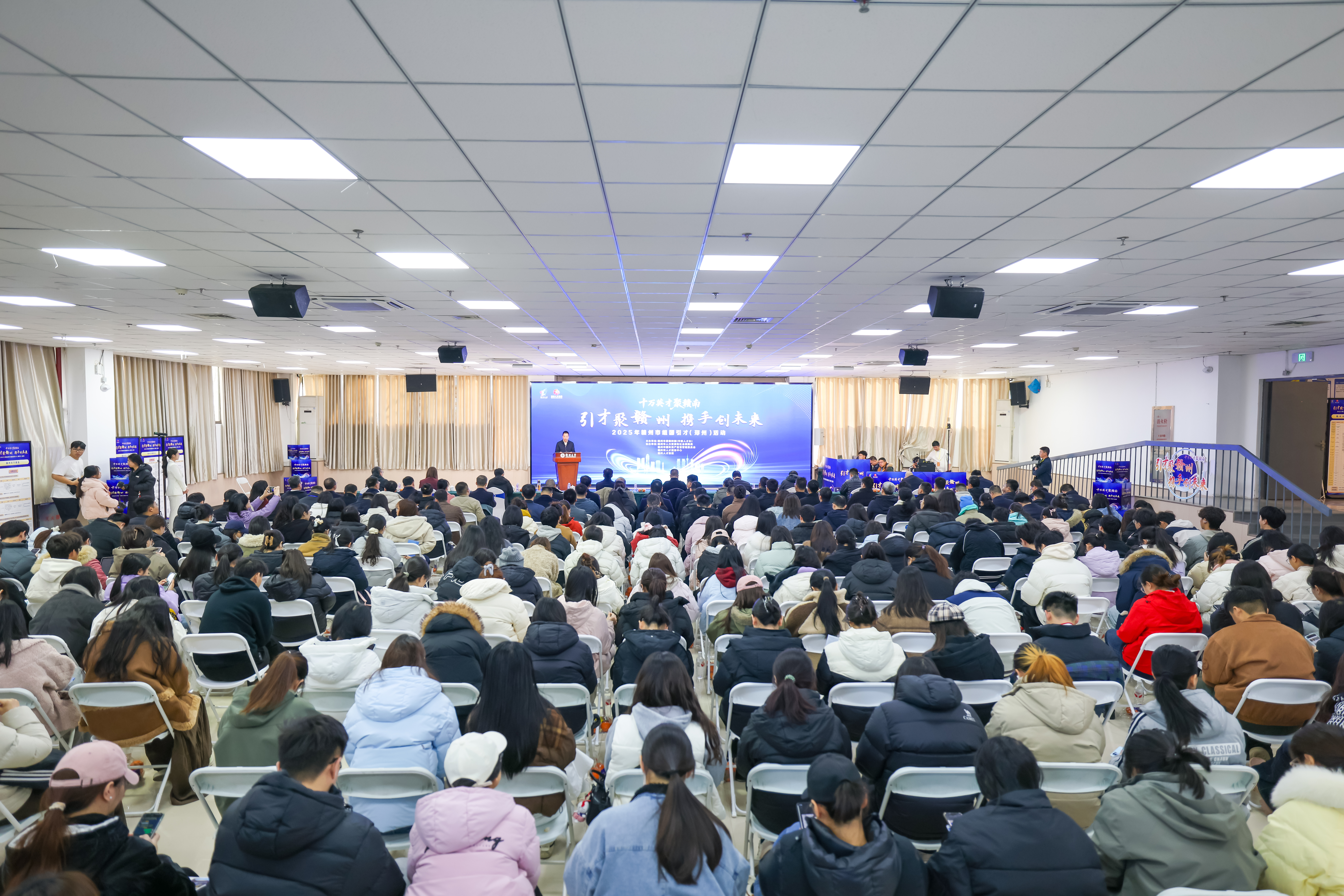 推介会现场通过宣传片、AI政策宣讲、单位推介及互动交流等形式,全面展示了赣州的城市魅力、人才生态与发展机遇,吸引了众多学子踊跃咨询、积极交流。