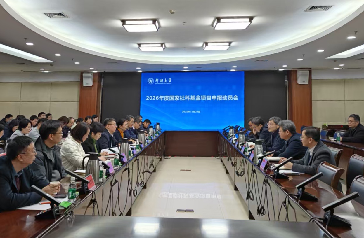王海杰对学校2025年文科科研工作取得的成绩给予充分肯定。他指出,国家社会科学基金项目和教育部人文社会科学研究项目再创佳绩,充分彰显了郑大文科的深厚底蕴和蓬勃活力。针对2026年度国家社会科学基金项目申报工作,他强调,一是要自觉提高站位,从国家使命、学校竞争和教师成长等维度,深刻认识国家社会科学基金项目申报的重大意义;二是提高有组织科研的覆盖面和穿透力,强化全过程精细化管理,推进分层分类分段指导培训,加强情感动员和资源支持,把各个环节的组织工作做实做细,切实保证推荐申报项目质量;三是强化目标任务导向,优化激励评价机制,将职称评审、人才评价、绩效分配与学院基金工作目标任务挂钩,以目标考核和激励评价促动力出成效;四是把重大重点项目突破作为工作重点,围绕国家重要战略部署,聚焦学校优势研究方向,强化研究项目选题储备,平台人才项目一体推进,实现重大重点项目立项数量显著提升。
