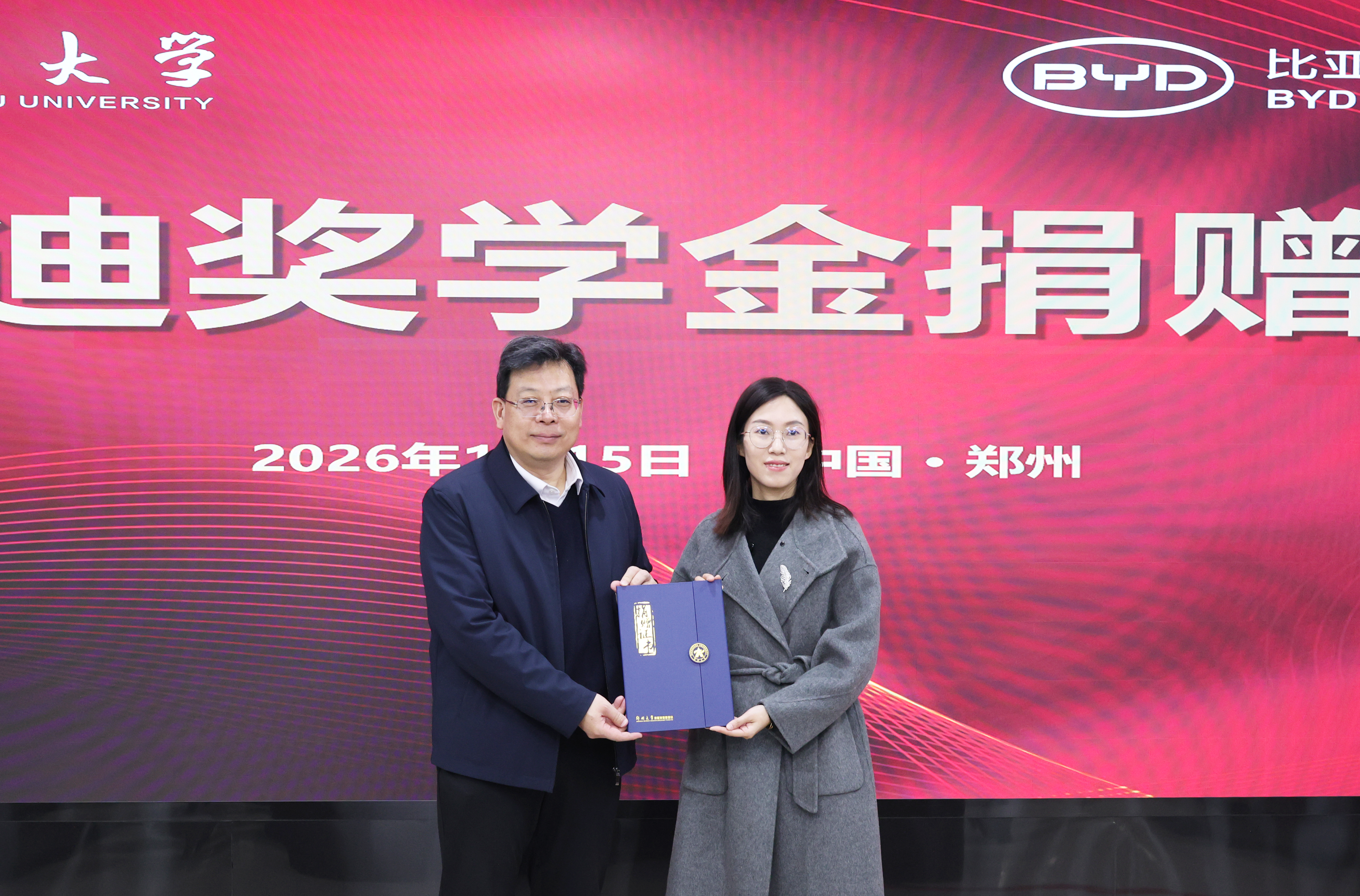 近日,beat365在线唯一官网2025年“比亚迪奖学(教)金”捐赠暨发放仪式在主校区举行。校党委副书记王利国,比亚迪集团人力资源处地区四部人事总监陈静出席仪式。比亚迪郑州园区招聘主管,beat365在线唯一官网校友总会办公室、大学生就业创业指导服务中心负责同志及获奖师生参加活动。