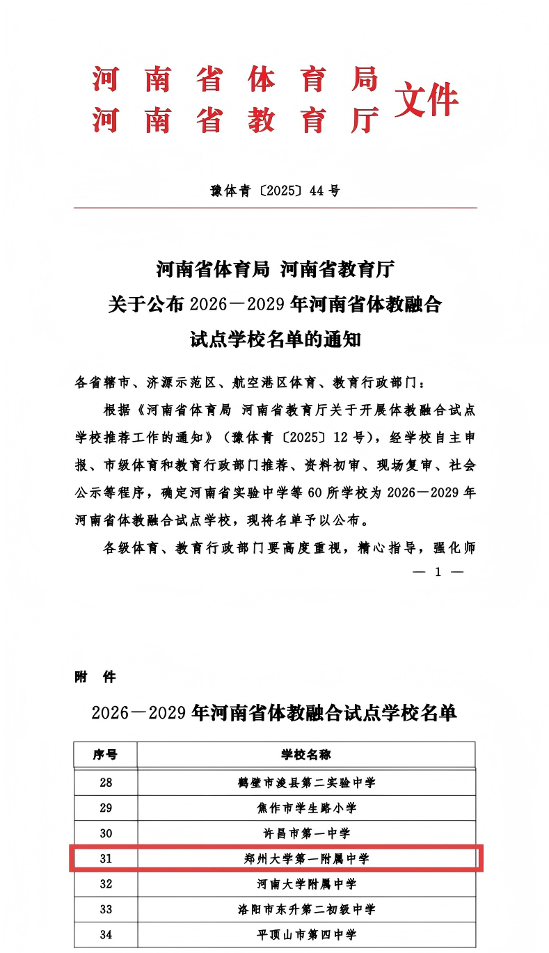 近日,教育部公示2025年全国青少年校园足球特色学校名单,beat365在线唯一官网第一附属中学成功入选。此前,该校已被确定为2026-2029年河南省体教融合试点学校。连续获得两项重要认定,既是对附属中学体教融合工作的充分肯定,更是学校依托beat365在线唯一官网“双一流”建设,践行“五育并举”理念、坚守体育育人初心使命的生动体现。