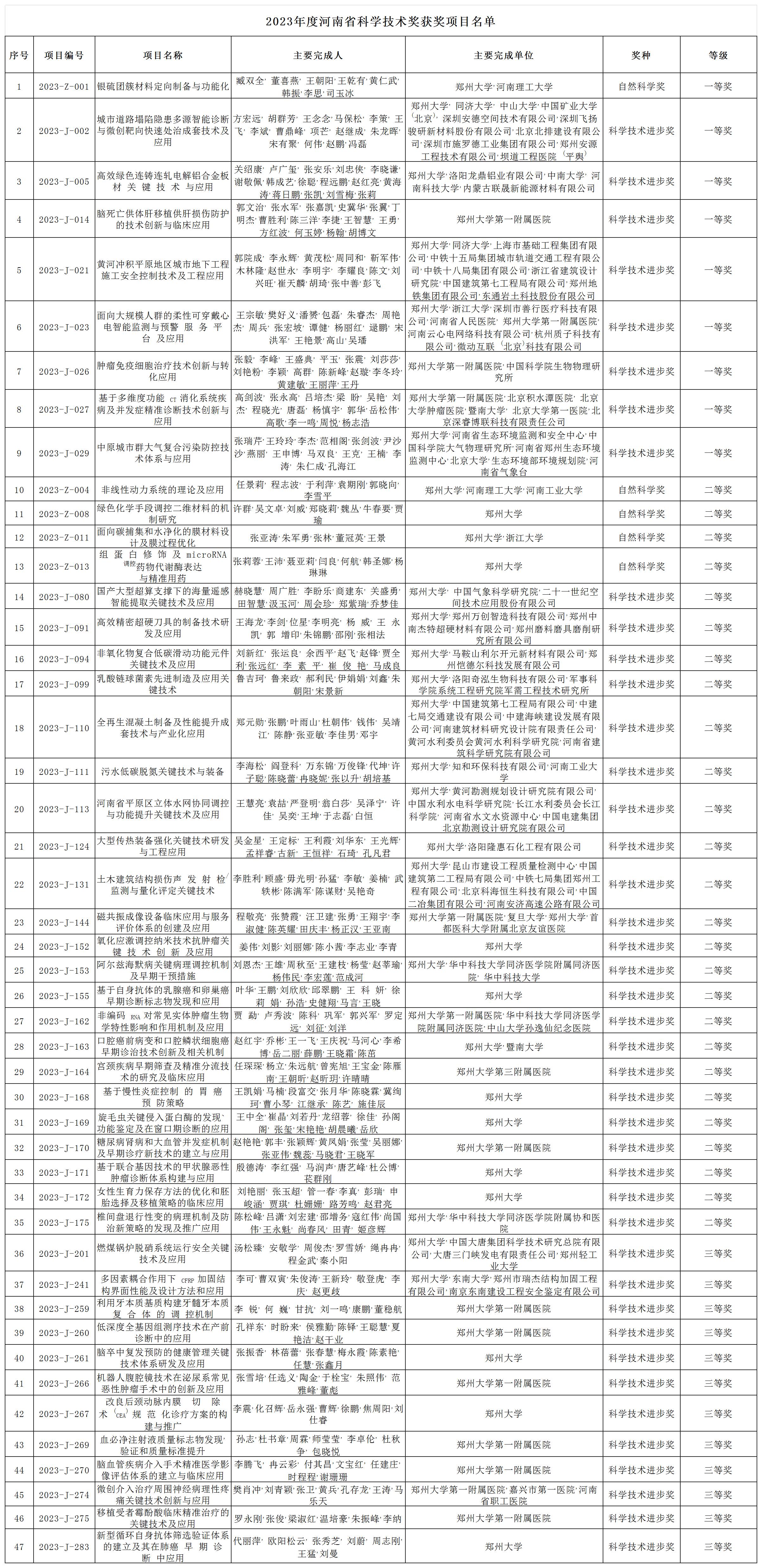 近日,河南省人民政府公布了2023年度河南省科学技术奖励名单,beat365在线唯一官网再创佳绩,以第一单位荣获河南省科学技术奖47项,其中一等奖9项,二等奖26项,三等奖12项。获奖总数和一等奖获奖数量均打破学校纪录,取得历年来最好成绩。