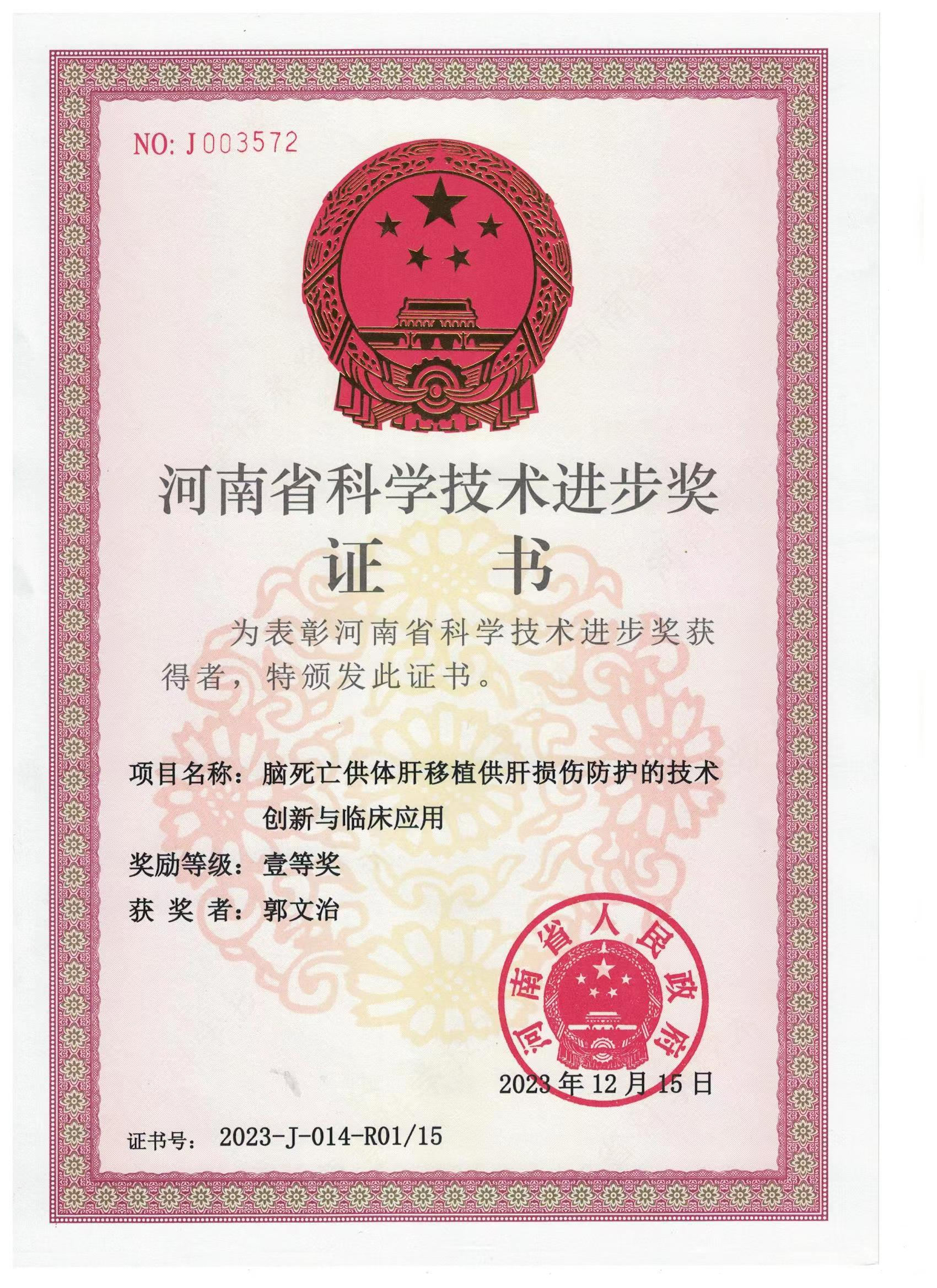 “通过我们的努力,患者能更好,这就是最有成就感的时刻。”1月17日,刚刚荣获2023年度河南省科学技术进步奖一等奖的项目负责人、郑大一附院肝移植病区主任郭文治说。
