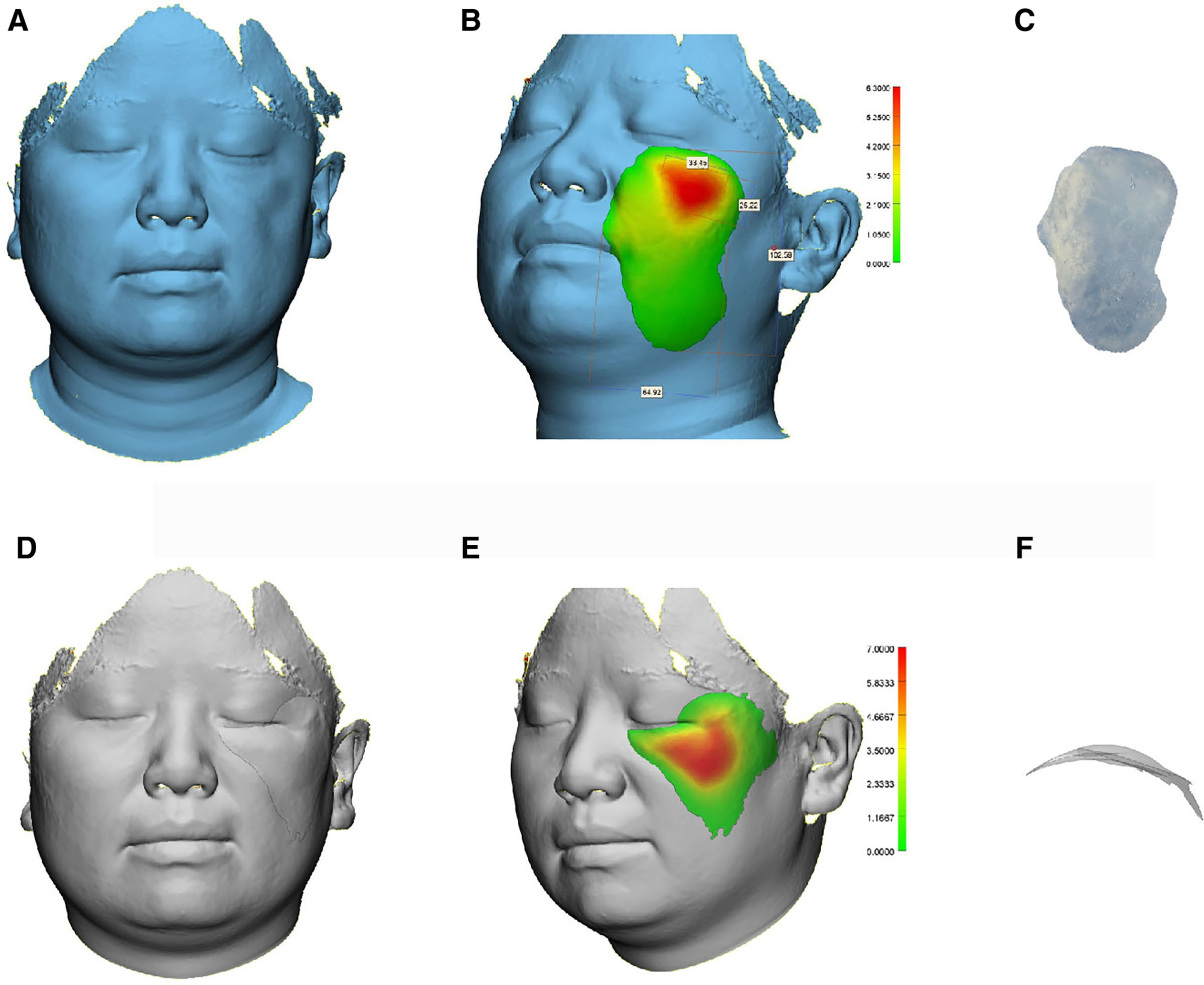 王喜梅教授团队自2005年开始对此病的临床研究。在100多例诊疗经验的基础上,团队创新地提出“两阶段修复”策略。在一期手术中,团队借助术前数字化 3D扫描与建模,精准锁定面部缺损区域,将脱细胞真皮基质(ADM)仿照韧带结构,分层固定在关键解剖位点,这一操作既能填补缺损,又能重建面部支撑层次;二期手术时,则在脱细胞真皮基质构建的稳定框架内进行自体脂肪移植(AFG),让面部形态更加自然美观。
