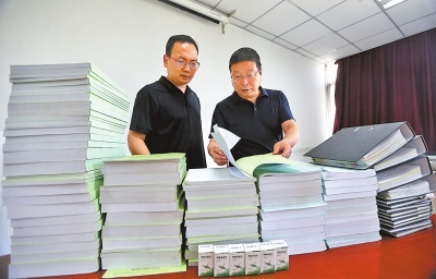 阿兹夫定研发过程中,每一步实验结果都保留着原始数据。8月6日中午,常俊标教授和孟勇刚老师一起整理阿兹夫定部分资料。单是申请上市的资料,摞起来就有一人多高。