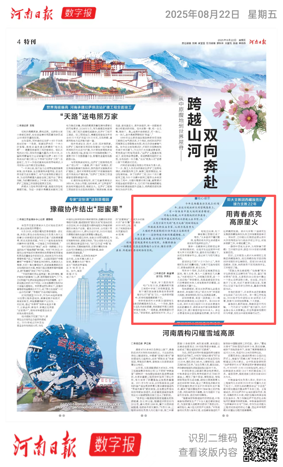 《河南日报》报道郑大支教团西藏服务队接力支教22年——用青春点亮高原星火
