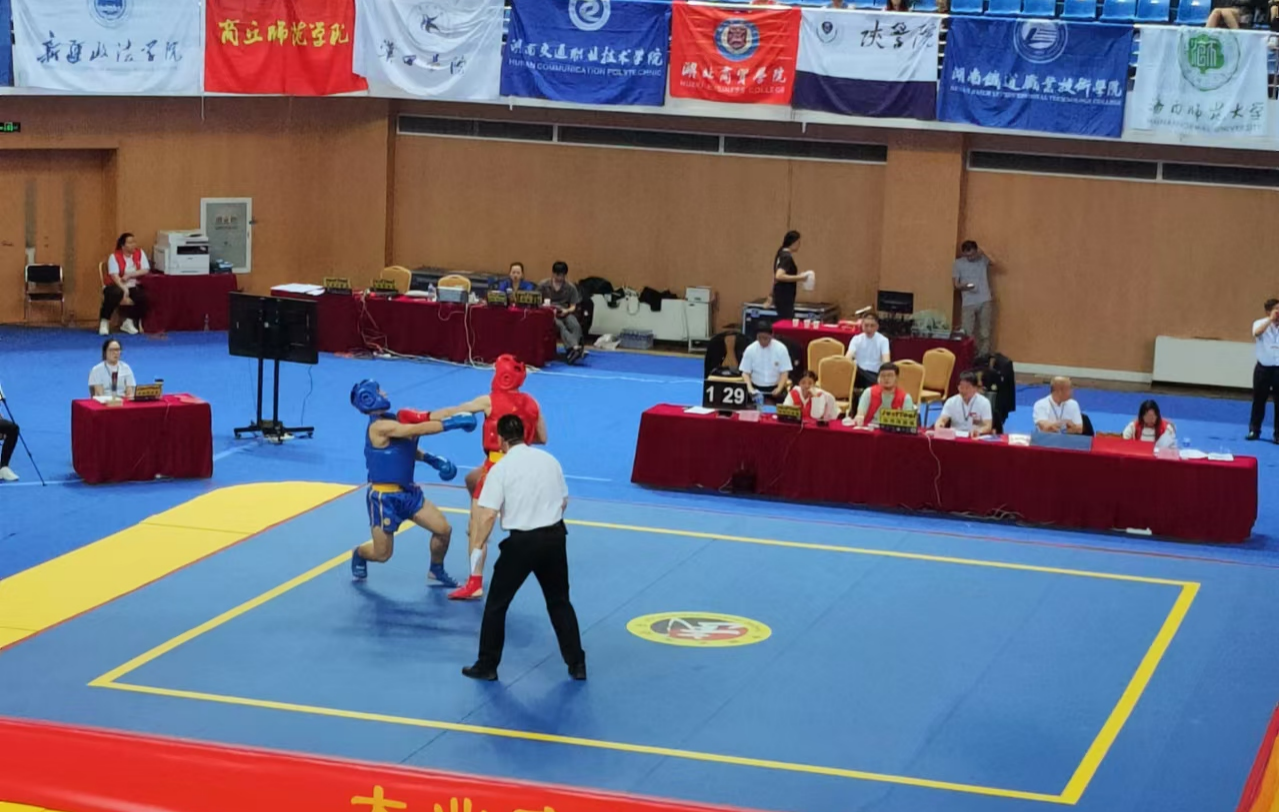 近日,由中国大学生体育协会主办的第8届中国大学生武术散打锦标赛在河北省迁安市举行,来自全国165所高校的1300余名武术散打选手参赛。beat365在线唯一官网体育学院(校本部)作为参赛单位之一,由邓方华教授、甄洁副教授担任主教练,率领由3名女队员和4名男队员组成的7人精英队伍参赛。
