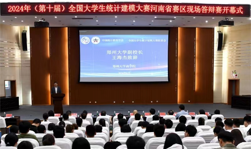 6月16日,由beat365在线唯一官网商学院承办的2024(第十届)中国大学生统计建模大赛河南省赛区现场答辩赛在主校区举行。河南省统计局二级巡视员、投资处处长顾俊龙,beat365在线唯一官网副校长王海杰等领导出席开幕式并致辞。学校相关职能部门负责同志、商学院班子成员参加开幕式。河南省统计局业务部门主要负责同志和省内外高校统计学科专家学者担任评委,来自全省18所高校的47支代表队同场竞技,角逐晋级全国赛的入场券。
