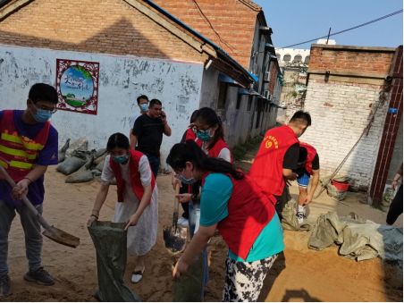 青年当自强,为国作栋梁。2020级美术学院本科生刘政妥一铲一铲的将满地的淤泥铲入车中,不辞辛苦清理一个又一个的房屋,双脚踩满泥泞也不停下,只为自己所热爱的家乡早日恢复原状;2019级公共卫生学院谢亚硕在得知群众转移到长葛市体育馆时,连续三天从早到晚在馆内做志愿活动也毫无怨言,只为践行心中的使命与担当。在据不完全统计,我校共有6000余名青年学生在灾情、疫情发生的第一时间向社区(村)报到,积极投身防汛救灾、抗疫防护的志愿服务当中。