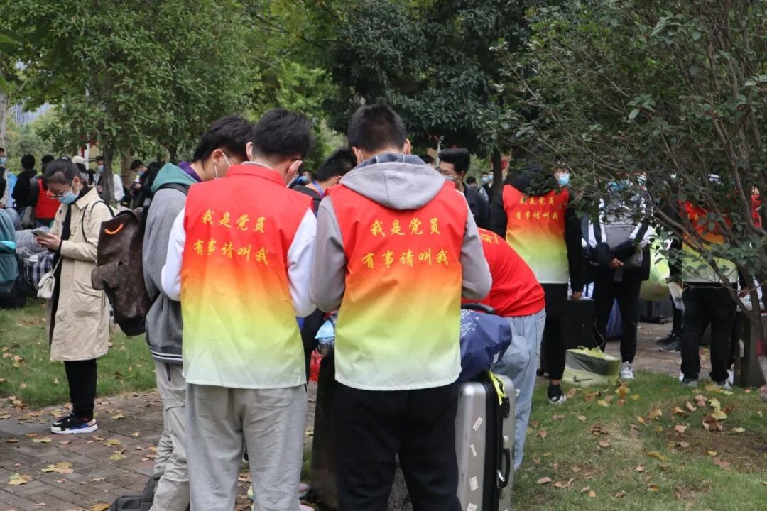 穿着“我是党员,有事请找我”字样红色马甲的土木工程学院的党员志愿者穿梭在校园的各个角落,他们在新生返校前就下发了问卷,调查新生所寄快递中床垫、被褥等生活必需品的数量,并组织志愿者统一代取。数学与统计学院“数之光”党员志愿服务队开创“五个一”迎新举措,即“一线”“一岗”“一结对”“一访谈”“一宣讲”,帮助新生融入大学生活,落实学院迎新工作部署。