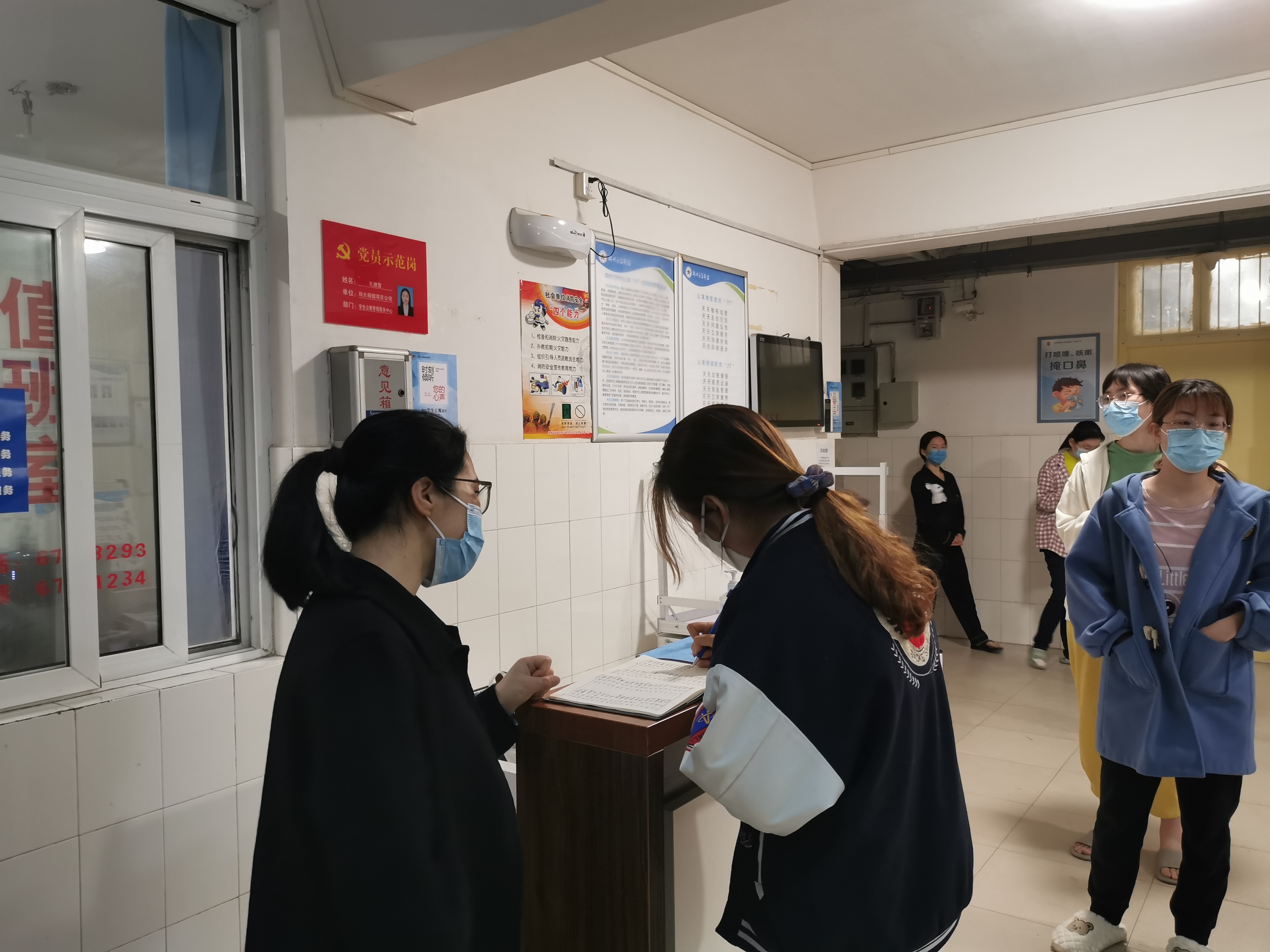 王晓颖在宿舍楼进行学生登记