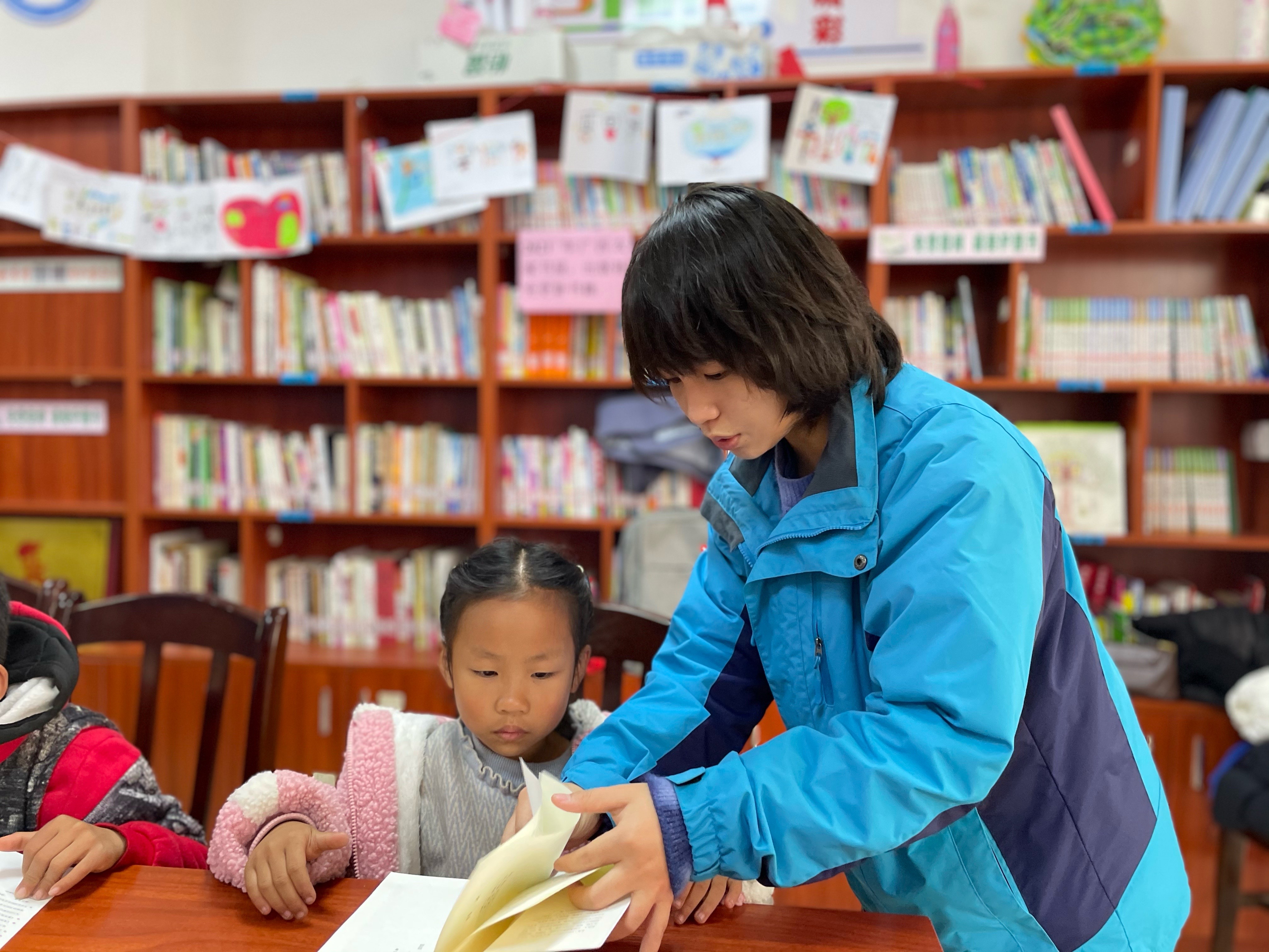 支教团成员和孩子一起阅读