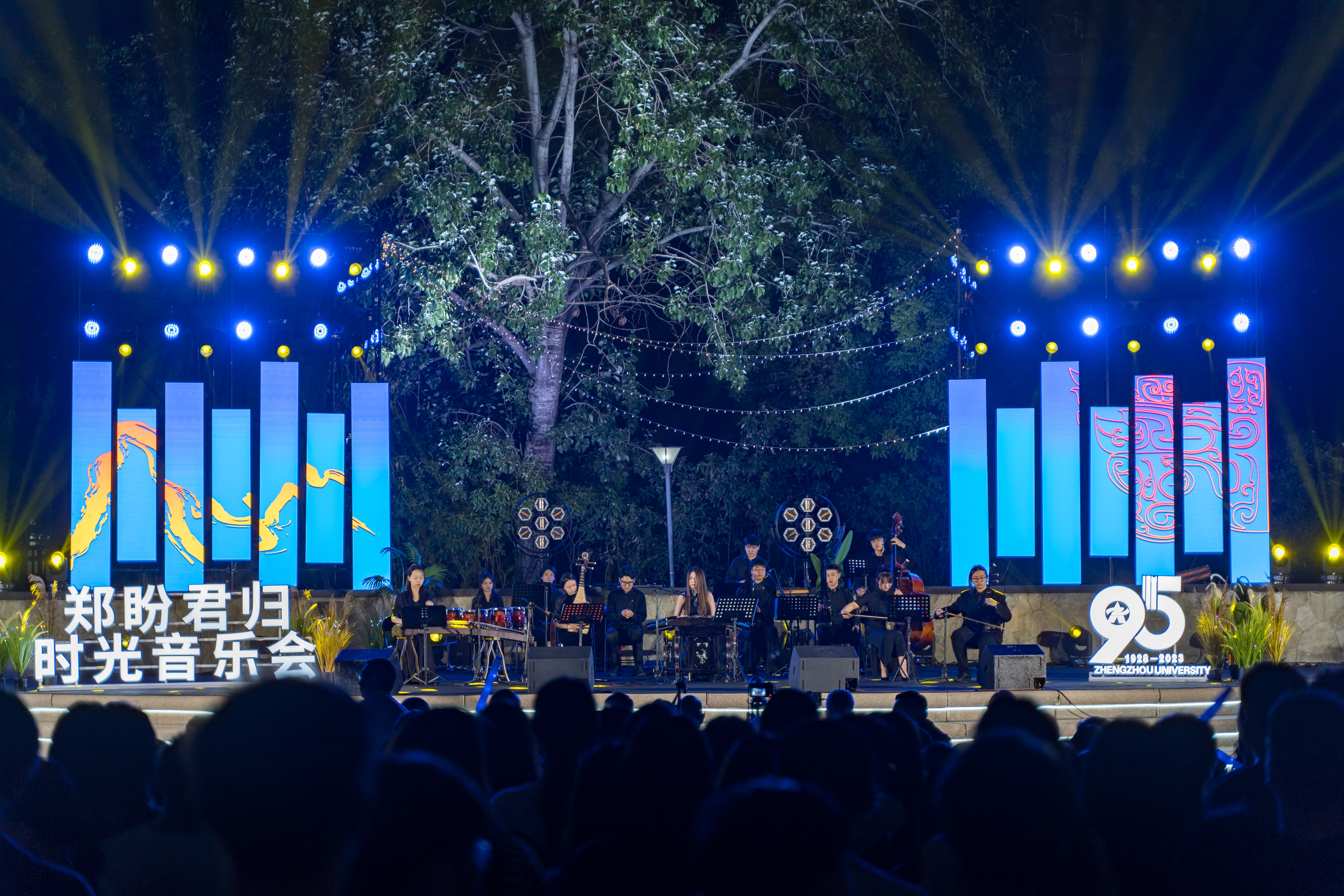在松园圆形下沉广场,“郑盼君归”时光音乐会如期举行,来自国内各地及海外的校友和在校师生跨越了几代人的青春,在此刻携手,联袂登台演出。多年未见的老同学们回到母校,互相问候一声;“老同学,你好吗?”有许多已经成家的校友带着孩子回到了母校,看望曾经的恩师,再忆这里的一草一木。