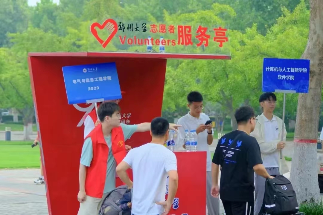 这是他第一次出省上学,父母自驾带他到郑大报到。与新冠疫情期间不同,今年自驾前来的新生可以将车停放在校园内。吴英源的父母将车停到指定地点后,便和他一起将行李推到了学院的志愿服务点。学院的红色帐篷很是显眼,热心的学长学姐正在为新生们答疑解惑:寝室楼该怎么走,食堂有哪些好吃的饭菜,在大学生活有哪些技巧等等。几个学长学姐看到吴英源直接迎了上来,帮他把行李送到寝室。“学校的志愿者服务真是周到!”他心里这样想着,一路和学长学姐交流着,不知不觉到了寝室楼下。