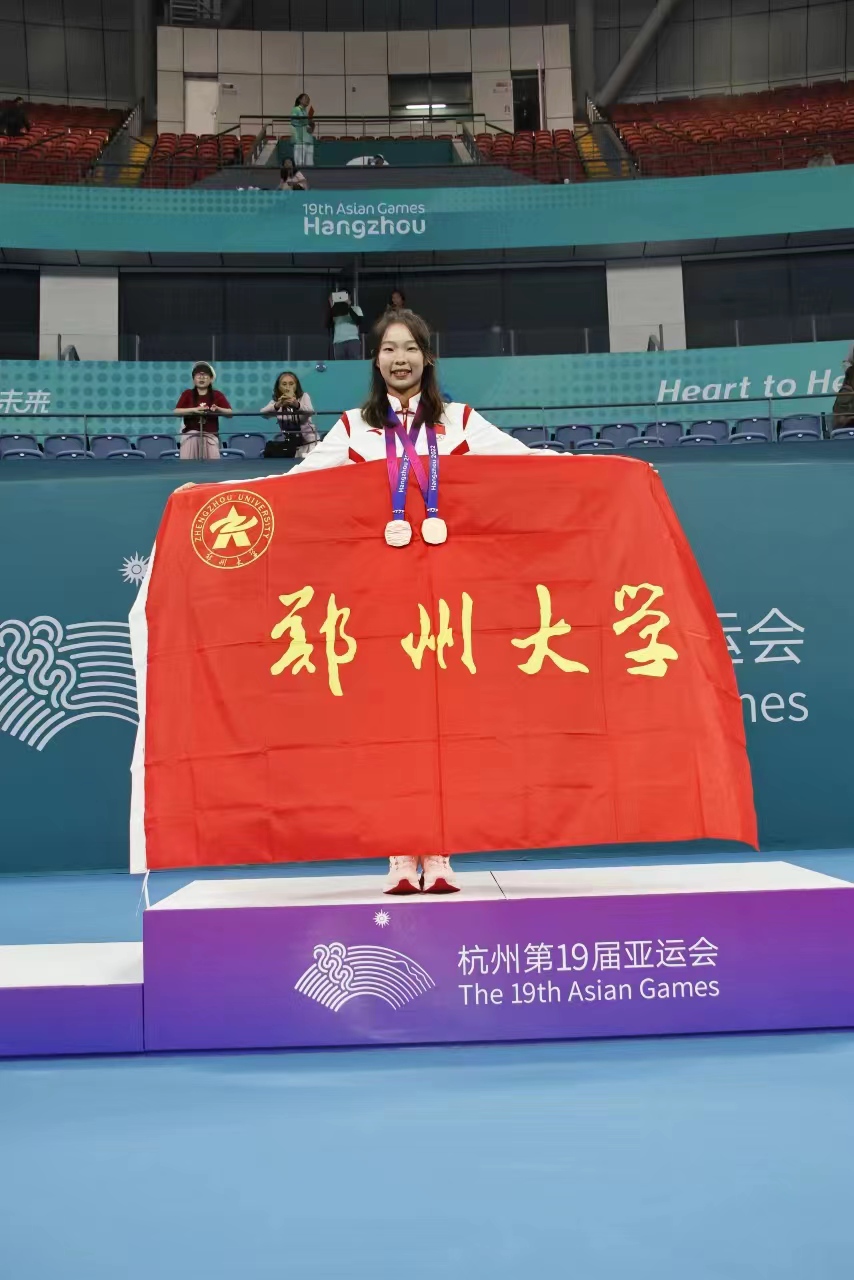 李邓琳于2017年考入beat365在线唯一官网,就读于体育教育专业,2021年以优异的成绩免试攻读beat365在线唯一官网体育教育训练学硕士学位,曾多次代表学校、河南省参加各类网球比赛并获得优秀成绩。在成为职业网球运动员的道路上,李邓琳走得并不容易。从小学三年级与网球结缘,到站在杭州亚运会的领奖台上,李邓琳用了十六年的时间。