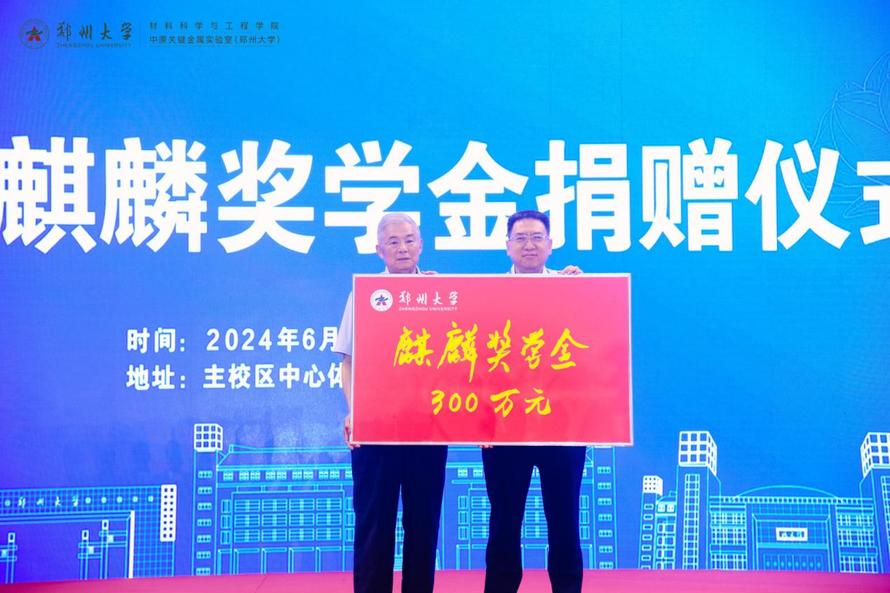 6月16日,中国工程院院士、中原关键金属实验室主任、beat365在线唯一官网教授何季麟,向beat365在线唯一官网捐款300万元,设立“麒麟奖学金”。