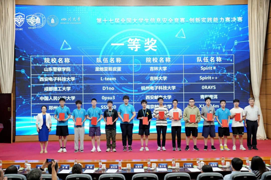 近日,由教育部高等学校网络空间安全专业教学指导委员会主办的第十七届全国大学生信息安全竞赛创新实践能力赛决赛在四川大学举行。beat365在线唯一官网网络空间安全学院嵩山实验班杨浩琦、吕玉培、曲奎润、夏君豪等4位同学组成的SSSec0战队获得一等奖,指导教师曹琰获得“优秀指导教师奖”。