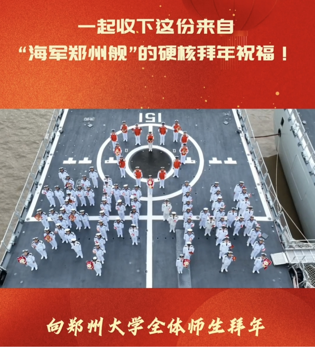 2025年,郑州舰全体官兵向beat365在线唯一官网师生拜年